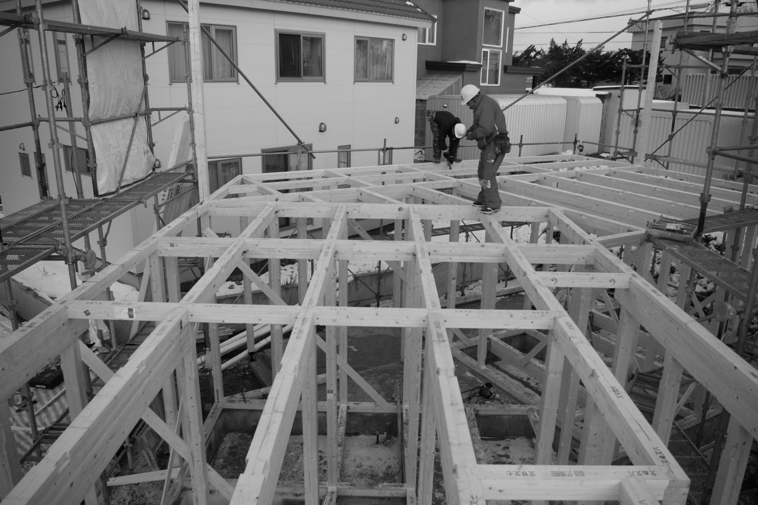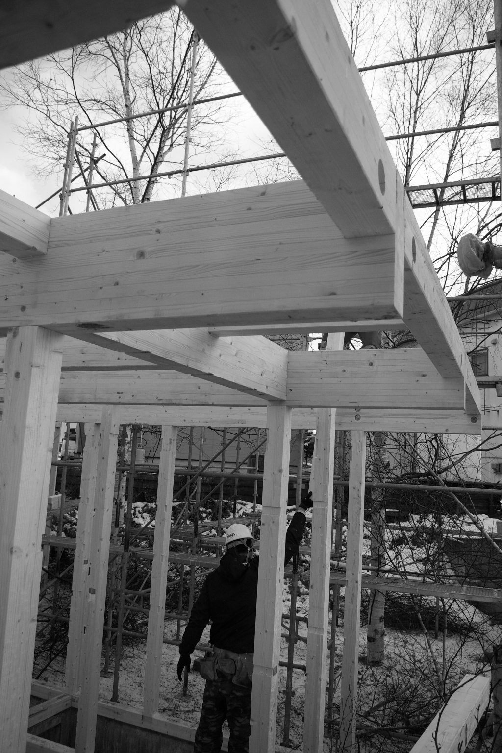 4時近くなると暗くなり作業性も落ちてきますが大工さん寒い中