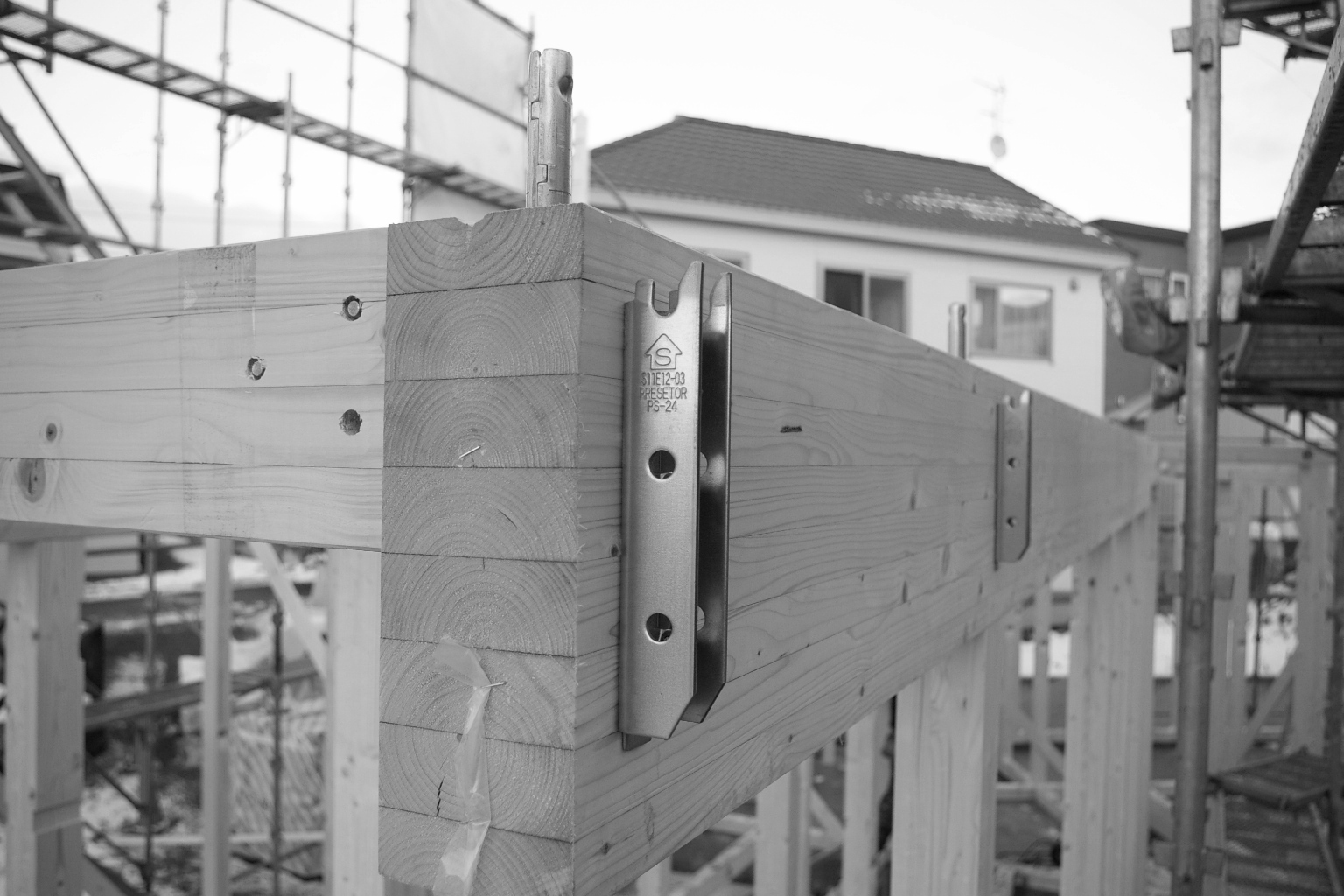 バルコニーの金物は外から見えないようにプレセッター金物で本体とバルコニー梁