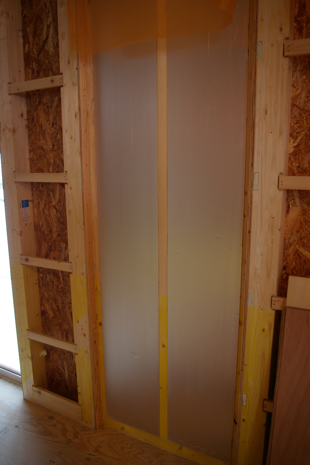 薄くします。この面は縦型の暖房パネルを埋め込む予定です。
