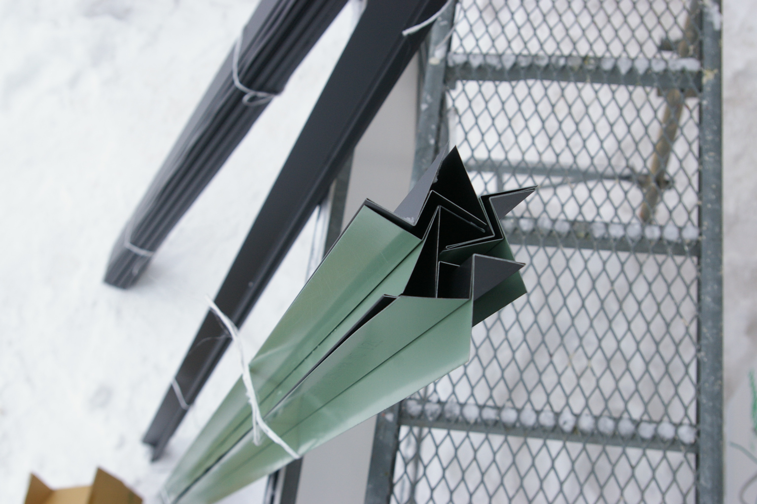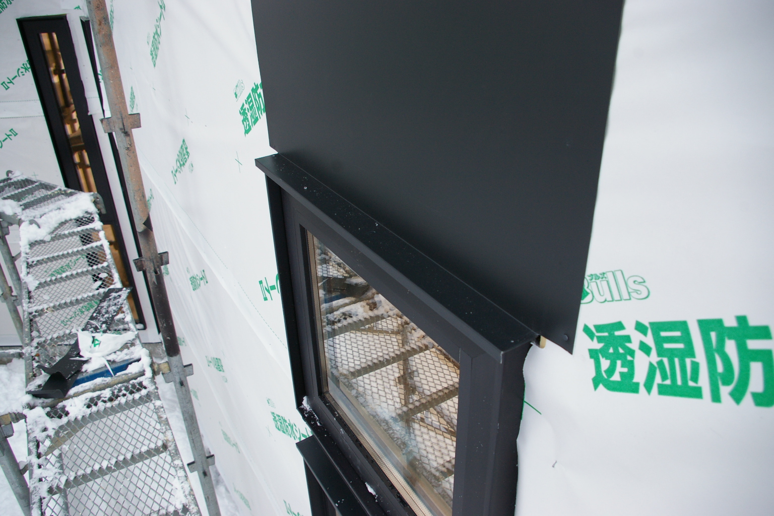 こちらは窓上の水切り。張ると窓枠から10mm程度出っ張ります。