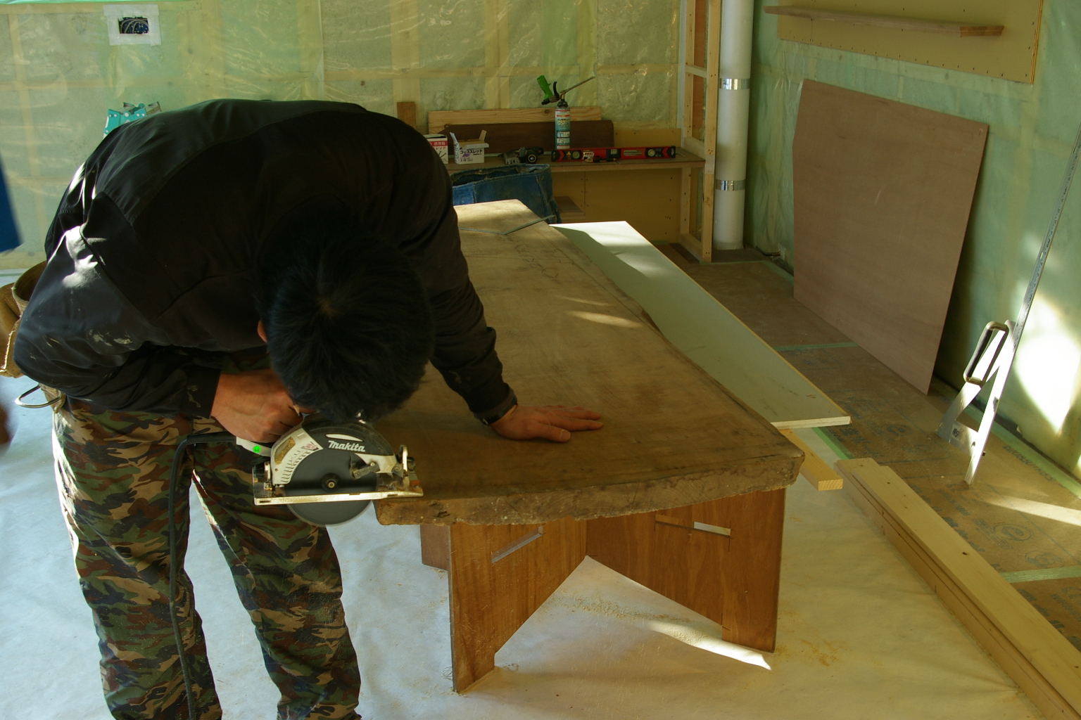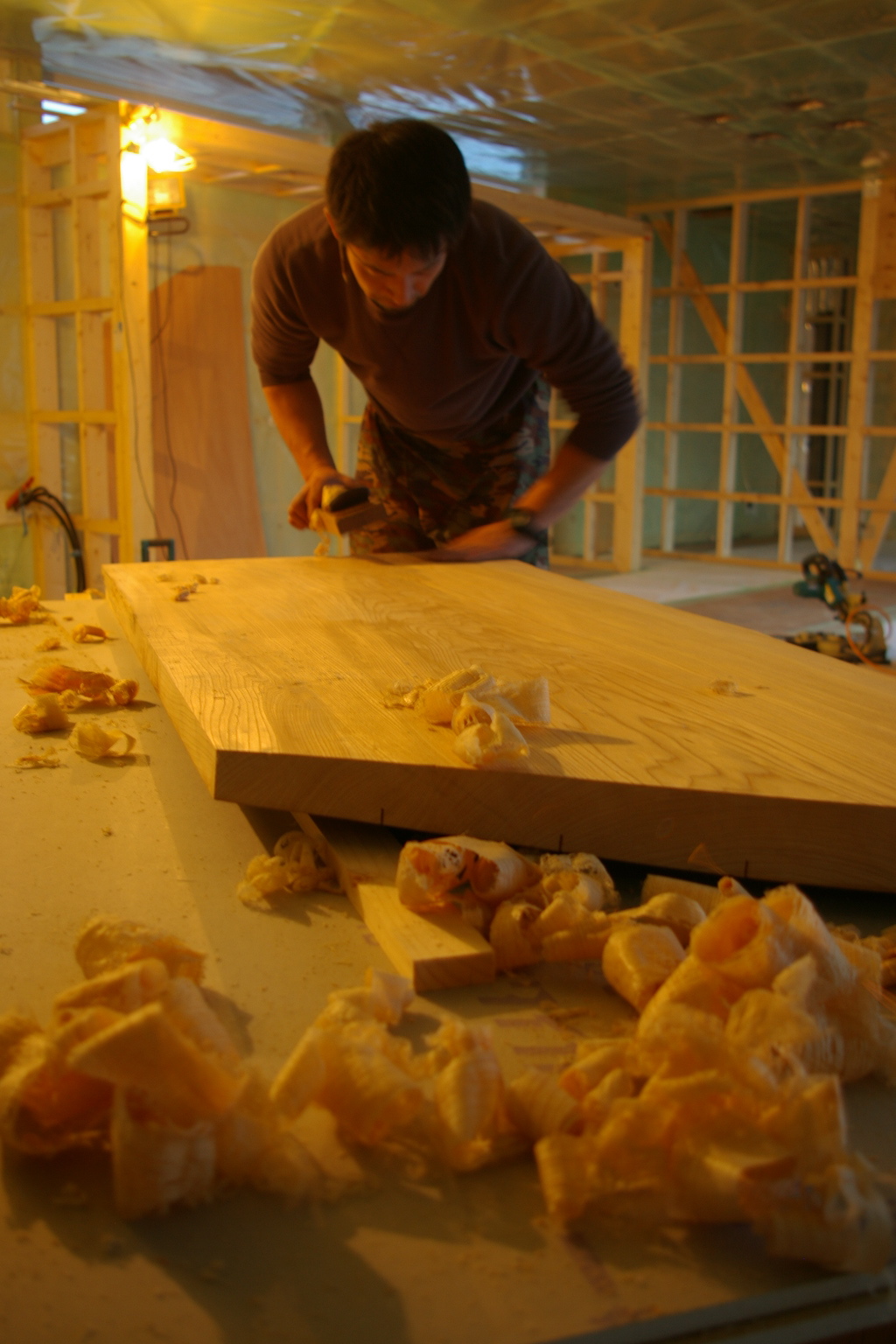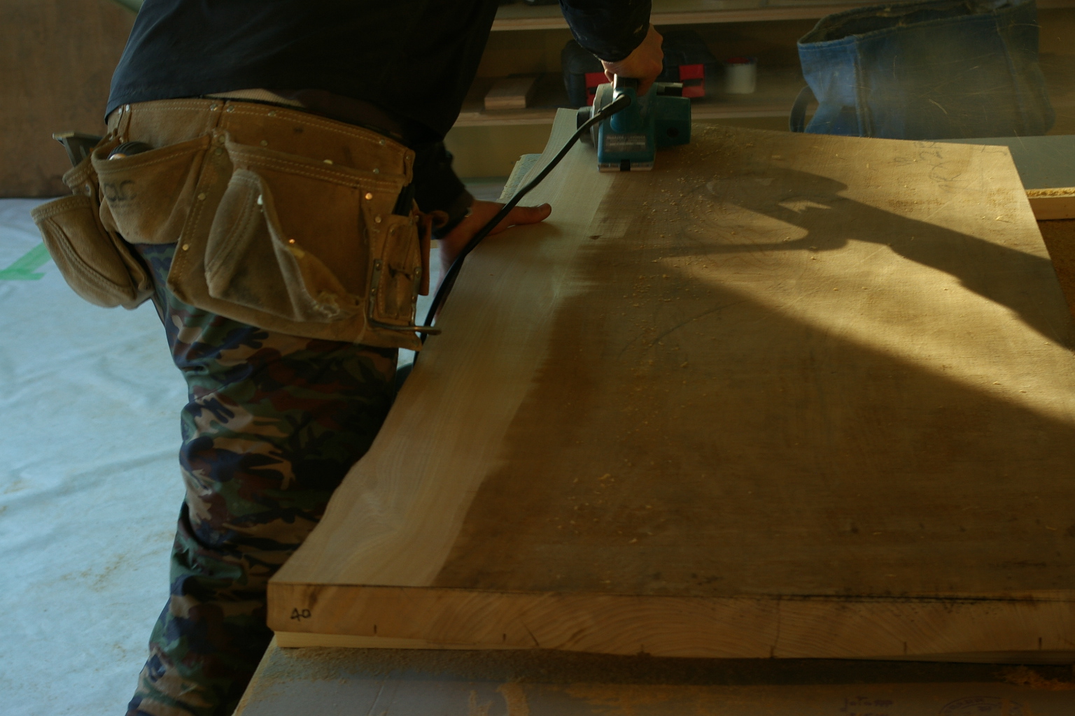 荒削りもようやく終わりカンナがけ。現場では本当カンナがけ見なくなったな〜。