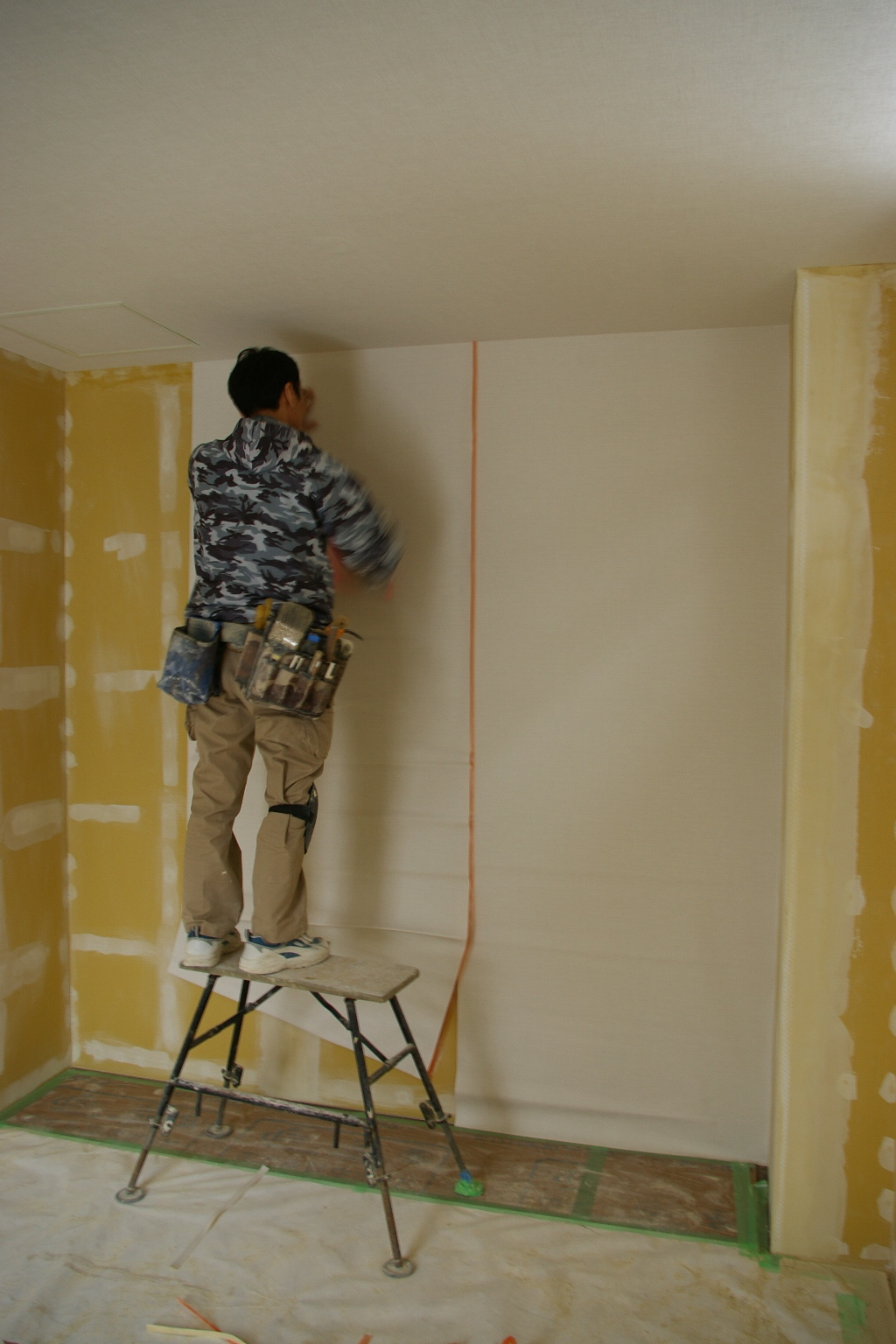 実際クロスが上手く貼れない部分や下地が見えるなどやり直しもありますが