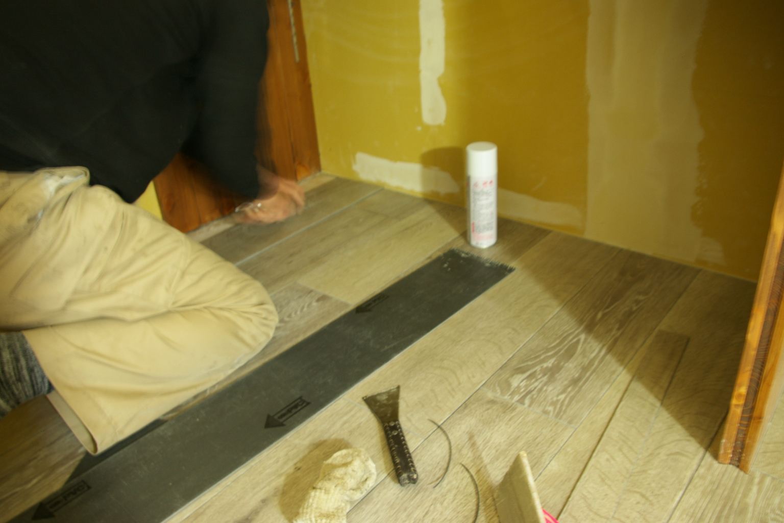 木目調のもので、一枚づつ貼りますので部分補修も可能。