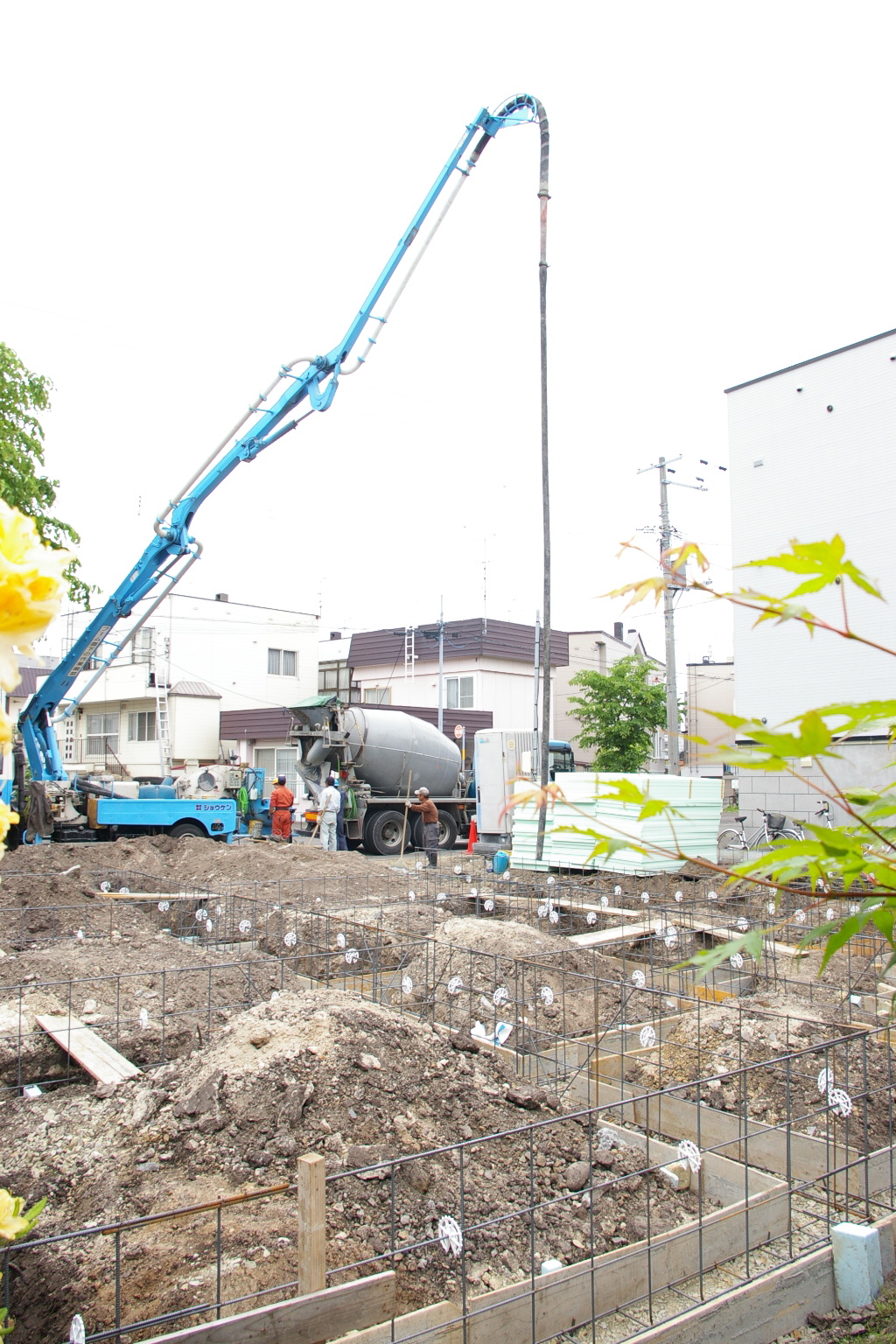 ベース打設後、型枠が奇麗に作られるようにコテで均します。