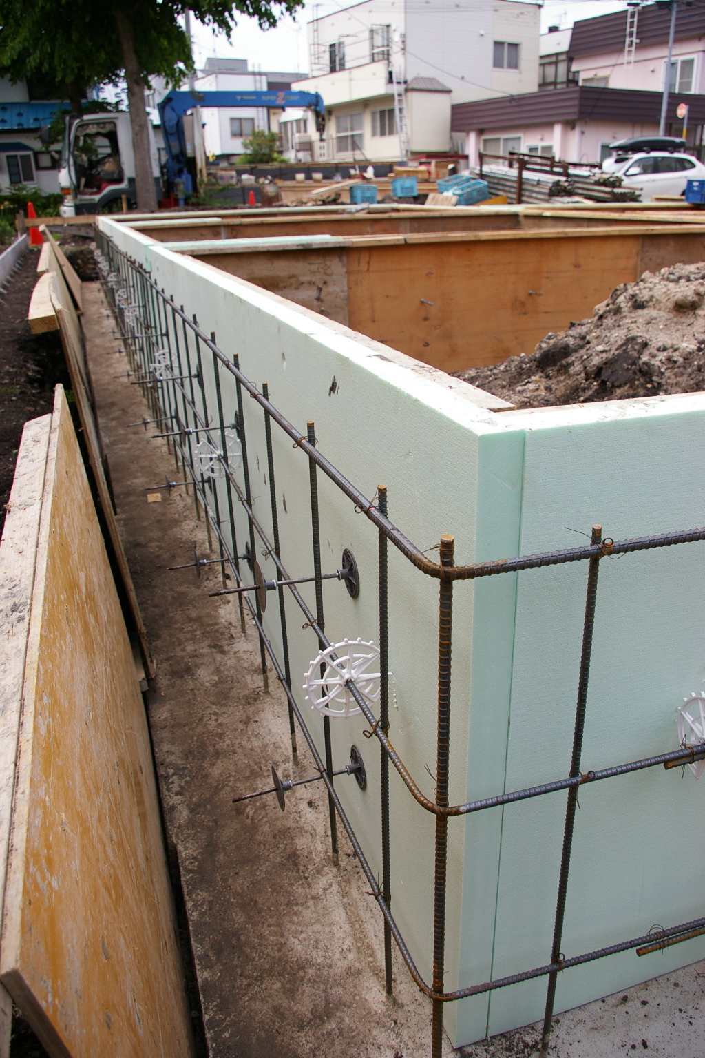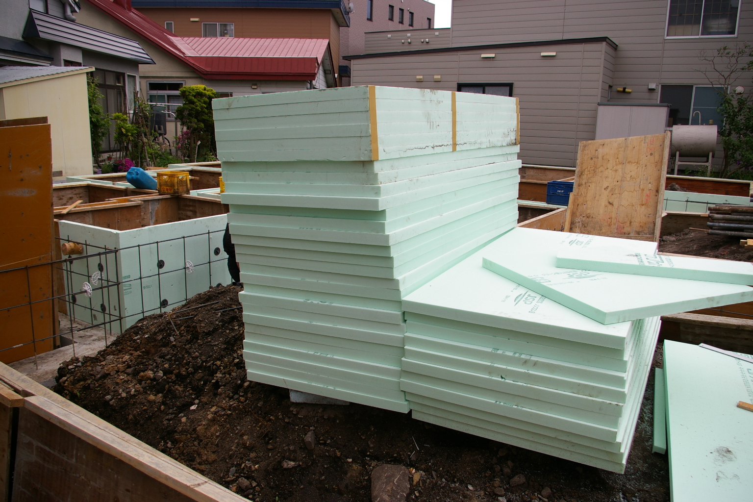 基礎厚は150㎜その外部に断熱50㎜ 内部に50㎜ 最後は土間にも50㎜の施工になります。