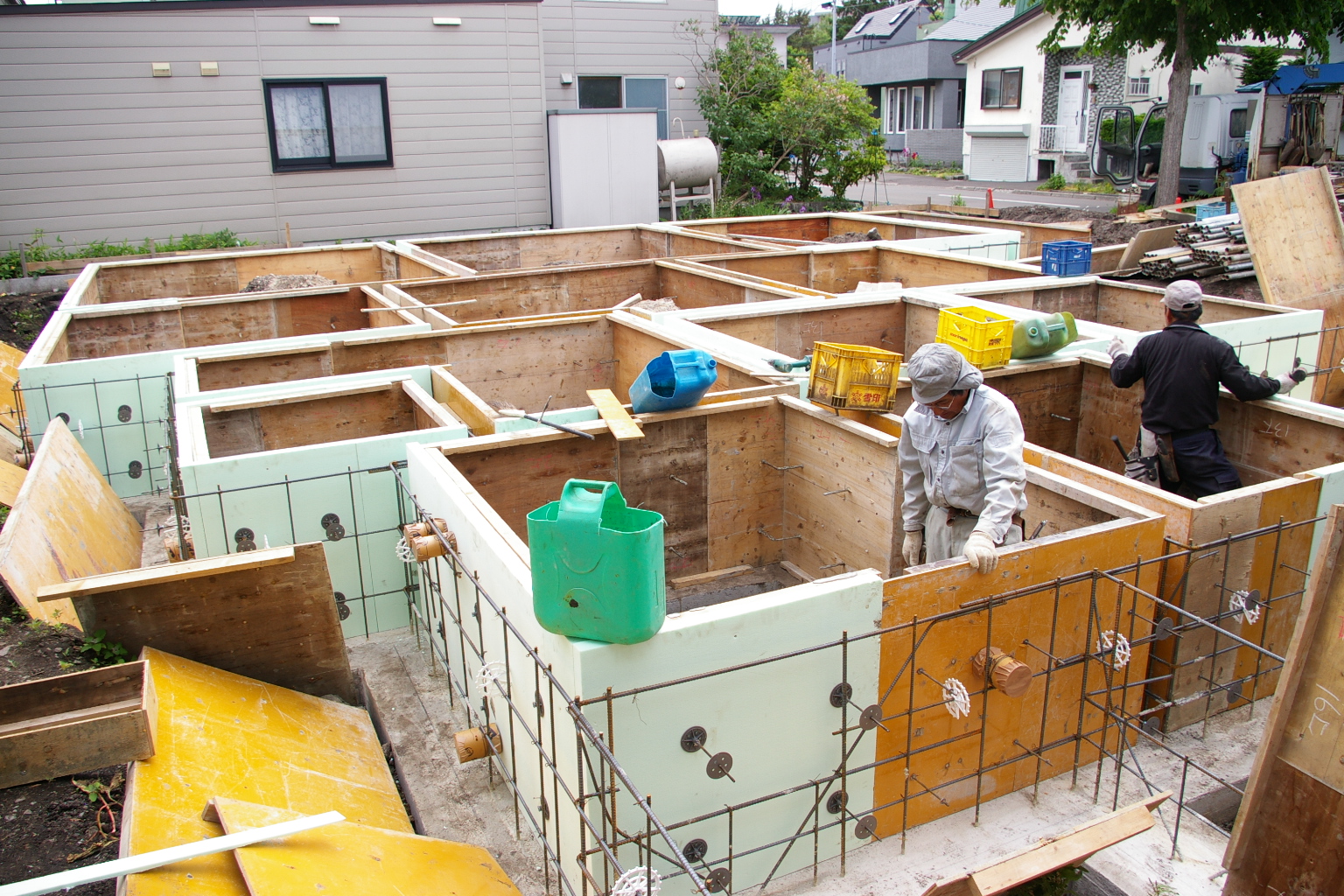 ベース枠も完成し基礎型枠工事が行われています。