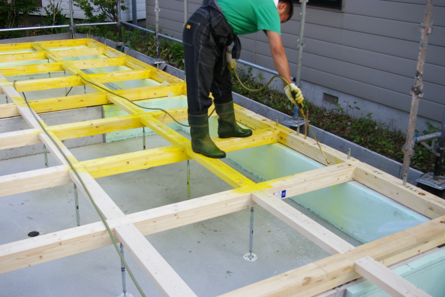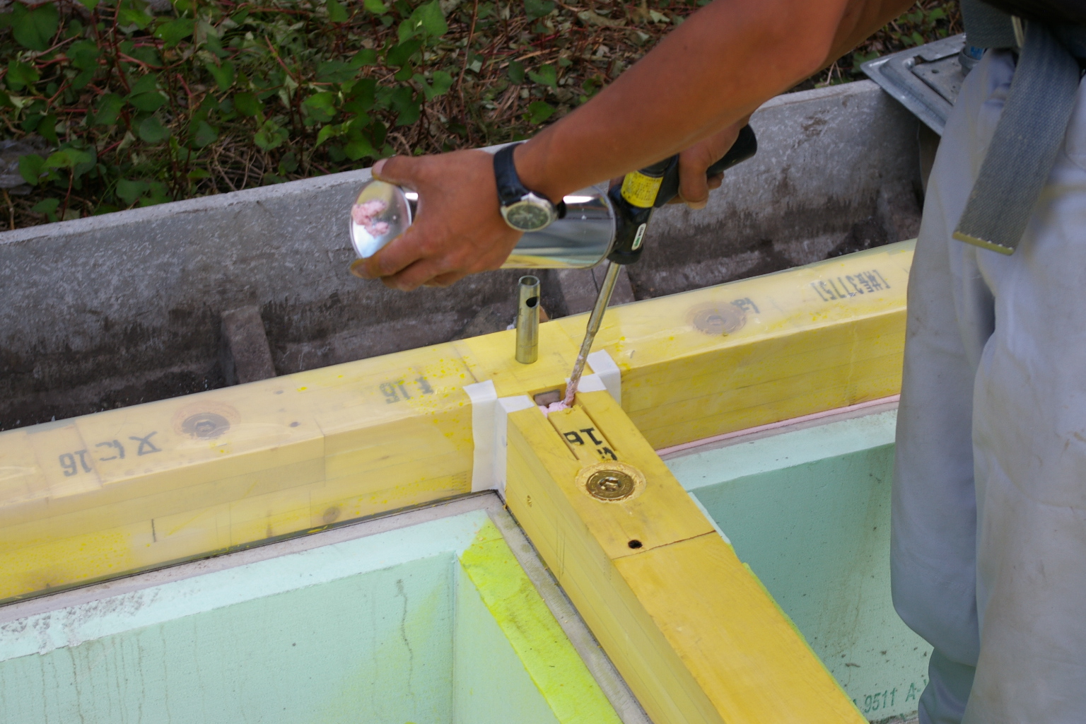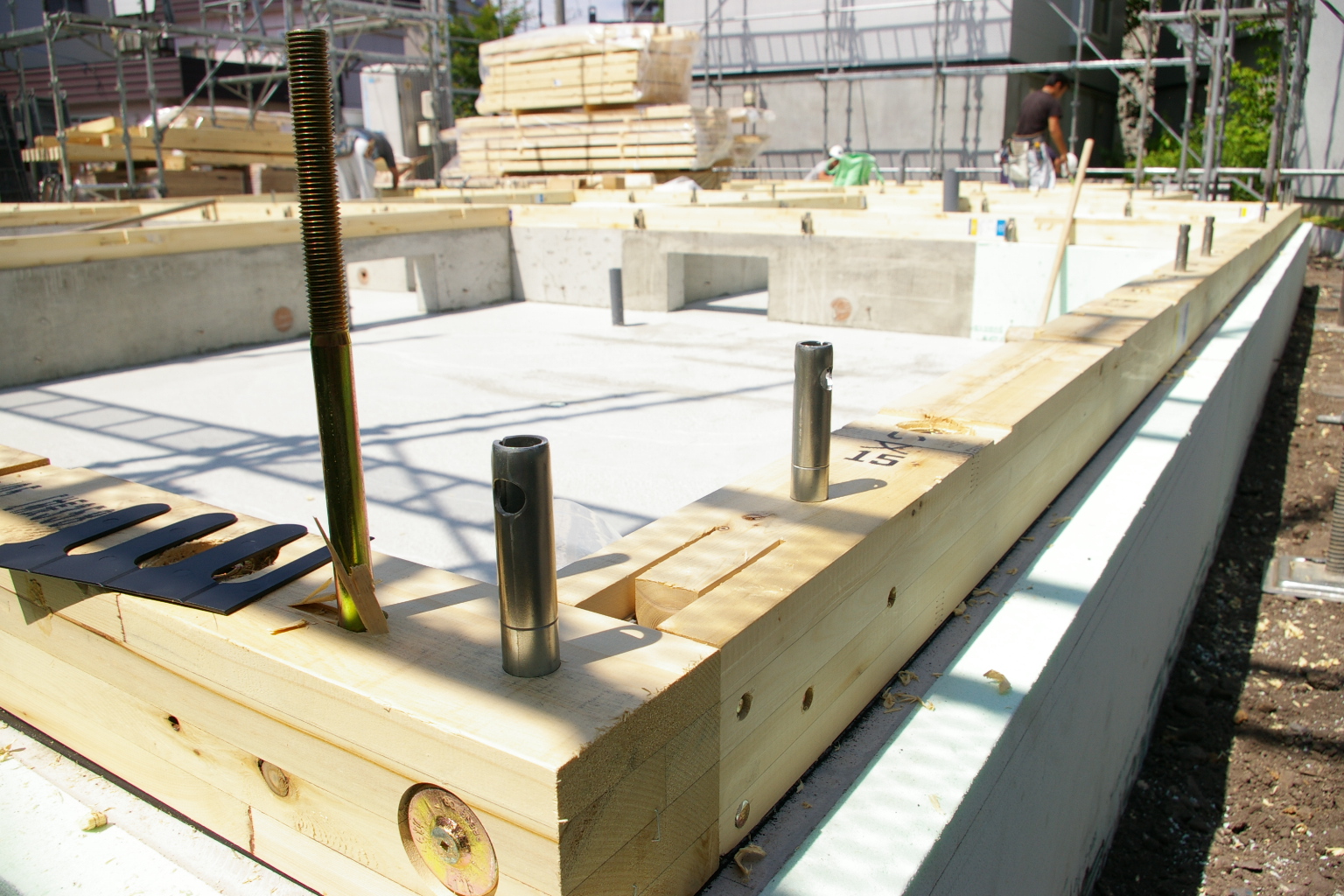 土台を止めるボルトもネタレス合板の場合は土台からボルトが出ない様埋め込み式