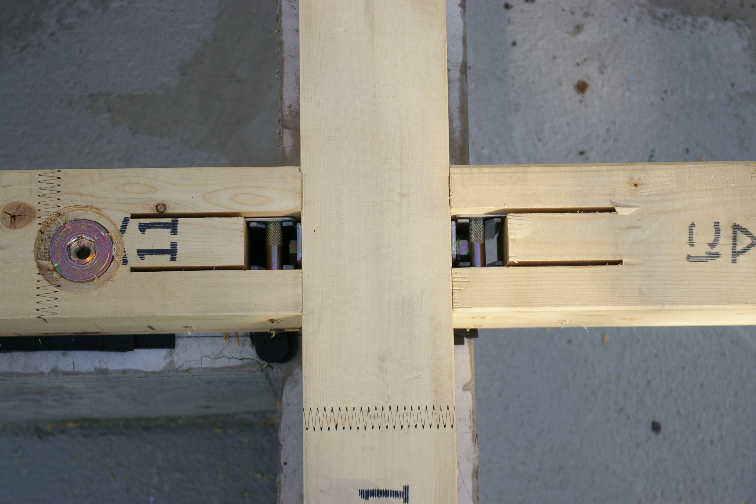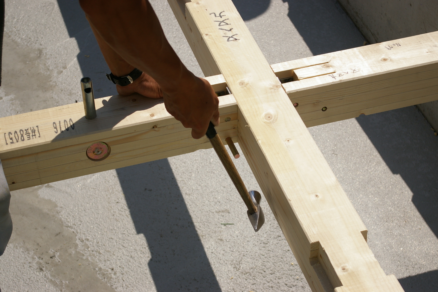 上のパイプは柱が乗る部分。通常はホゾが彫られ差し込んで止めますがパイプに柱差し込み