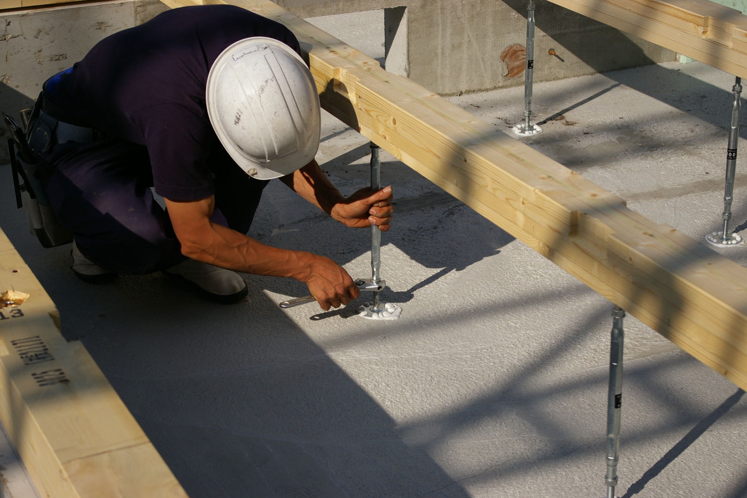 大引き下は鋼製束でジャッキーアップして大引を支えます。