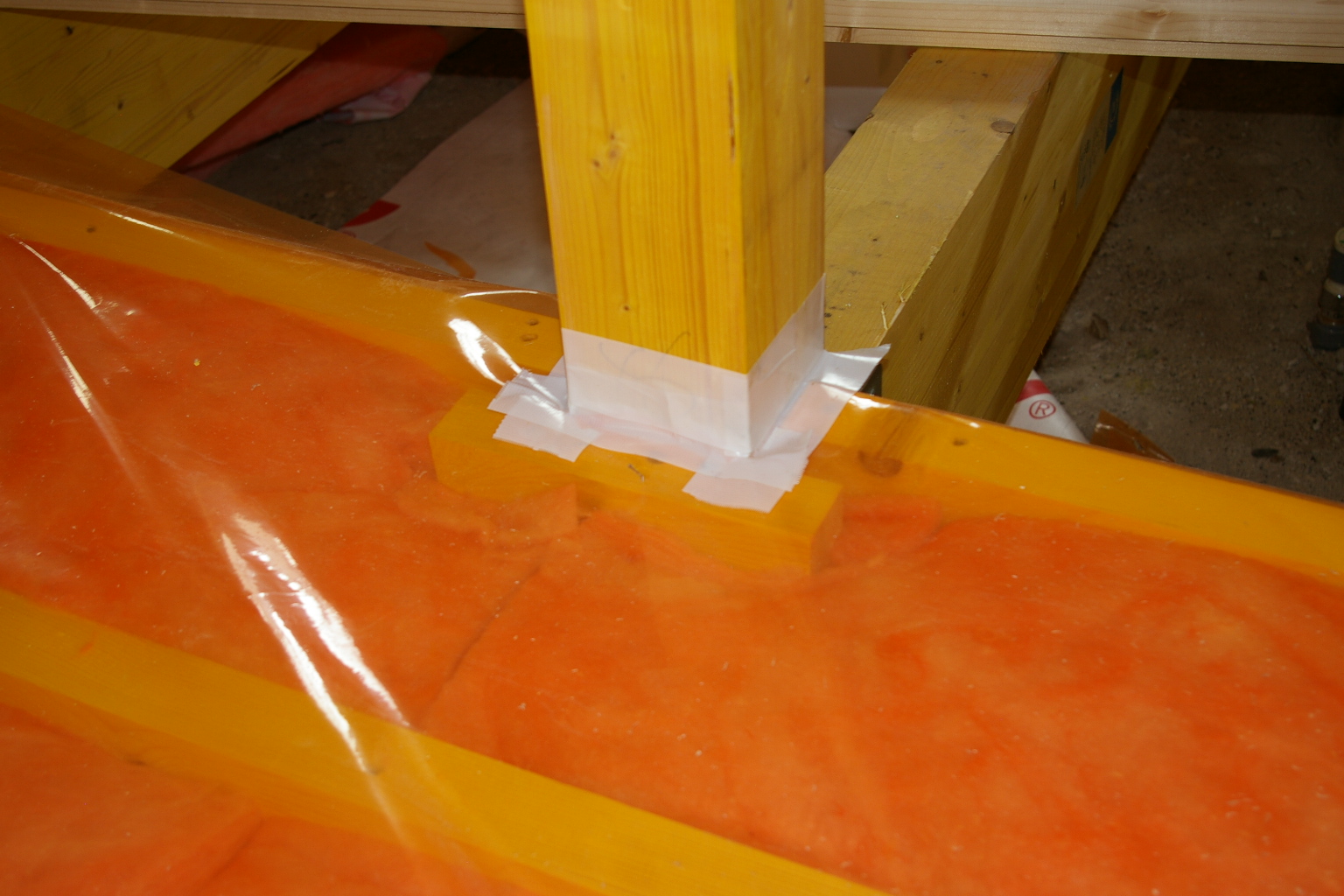 柱の立ち上がり部分には気密テープ処理をします。