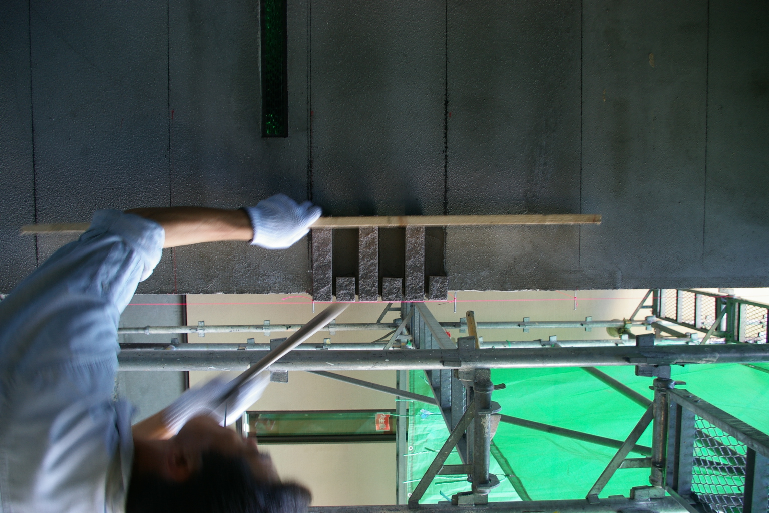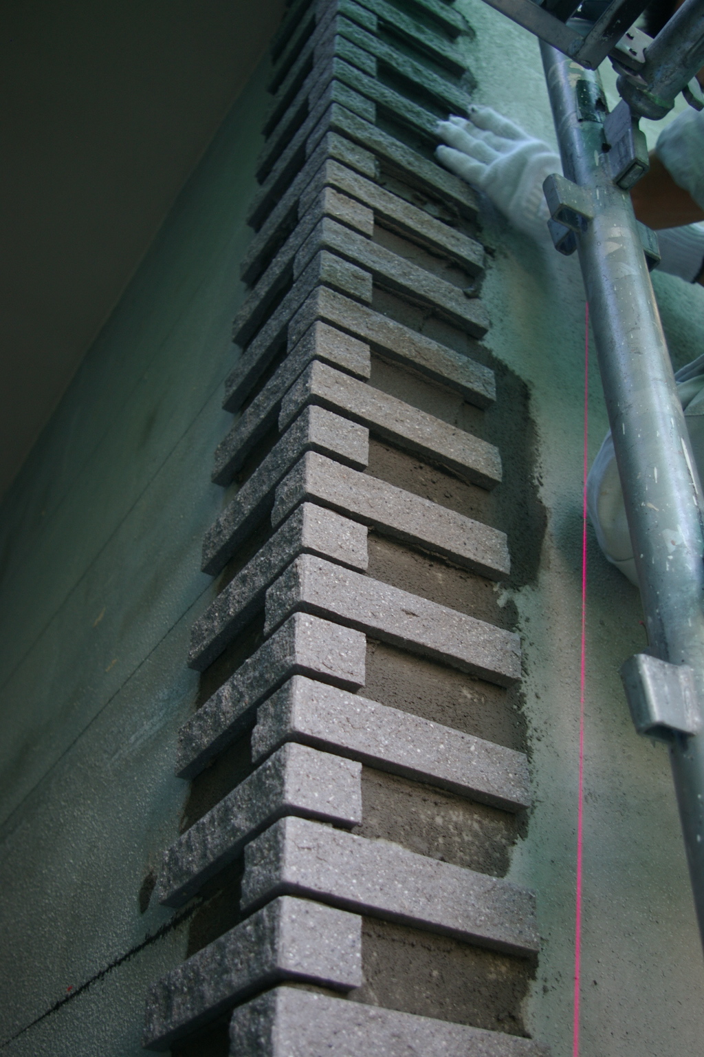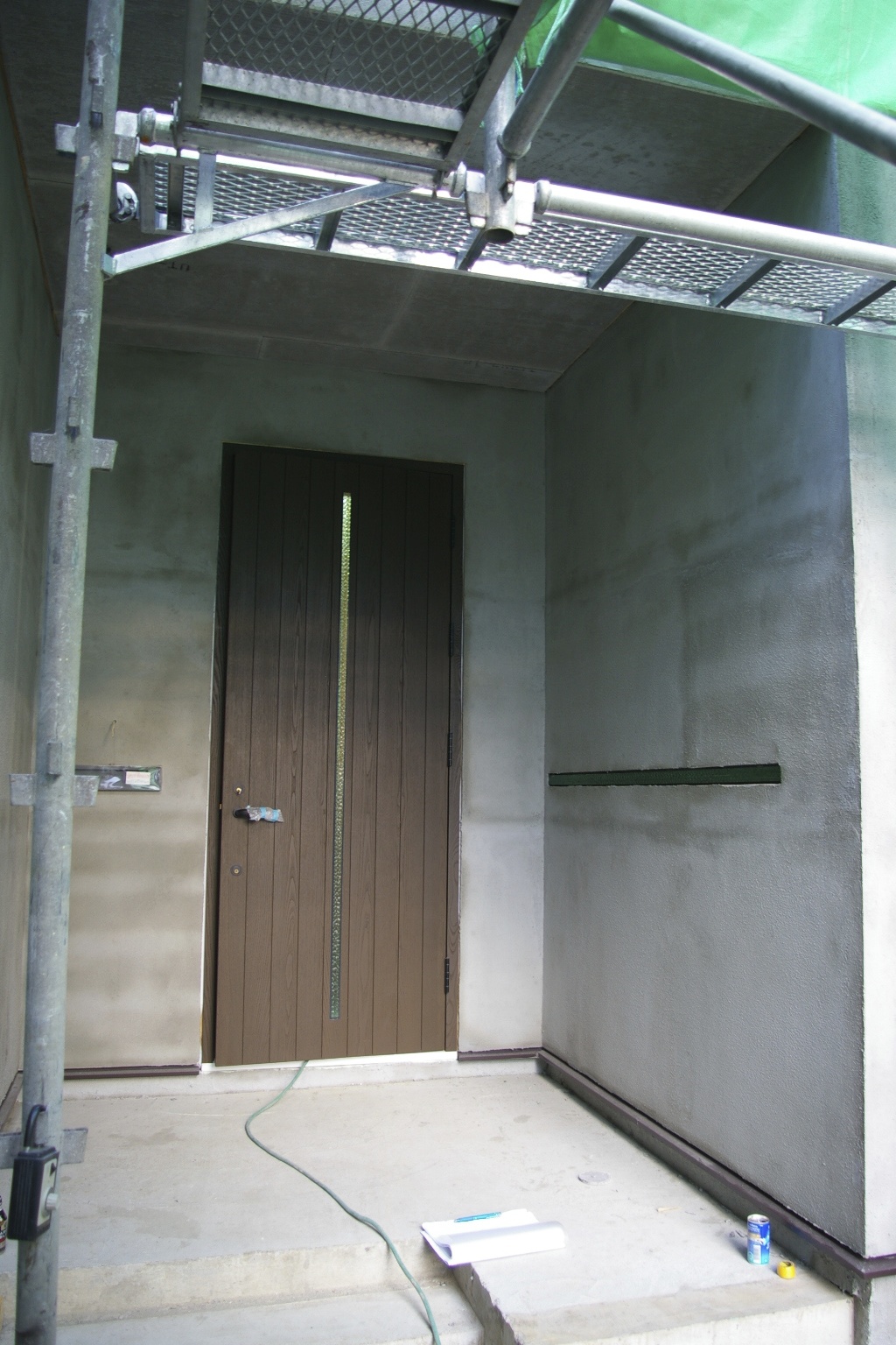正面玄関前に貼ります。下地作業は事前に終了しています。