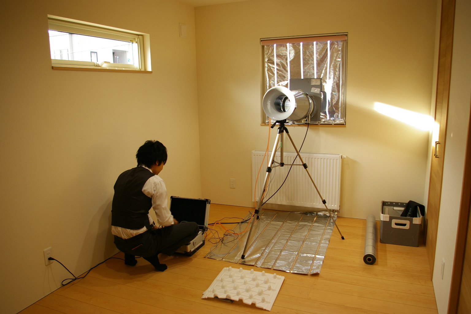 ボードを貼る前の測定ですので空気の漏れ箇所がある程度予測出来ます。