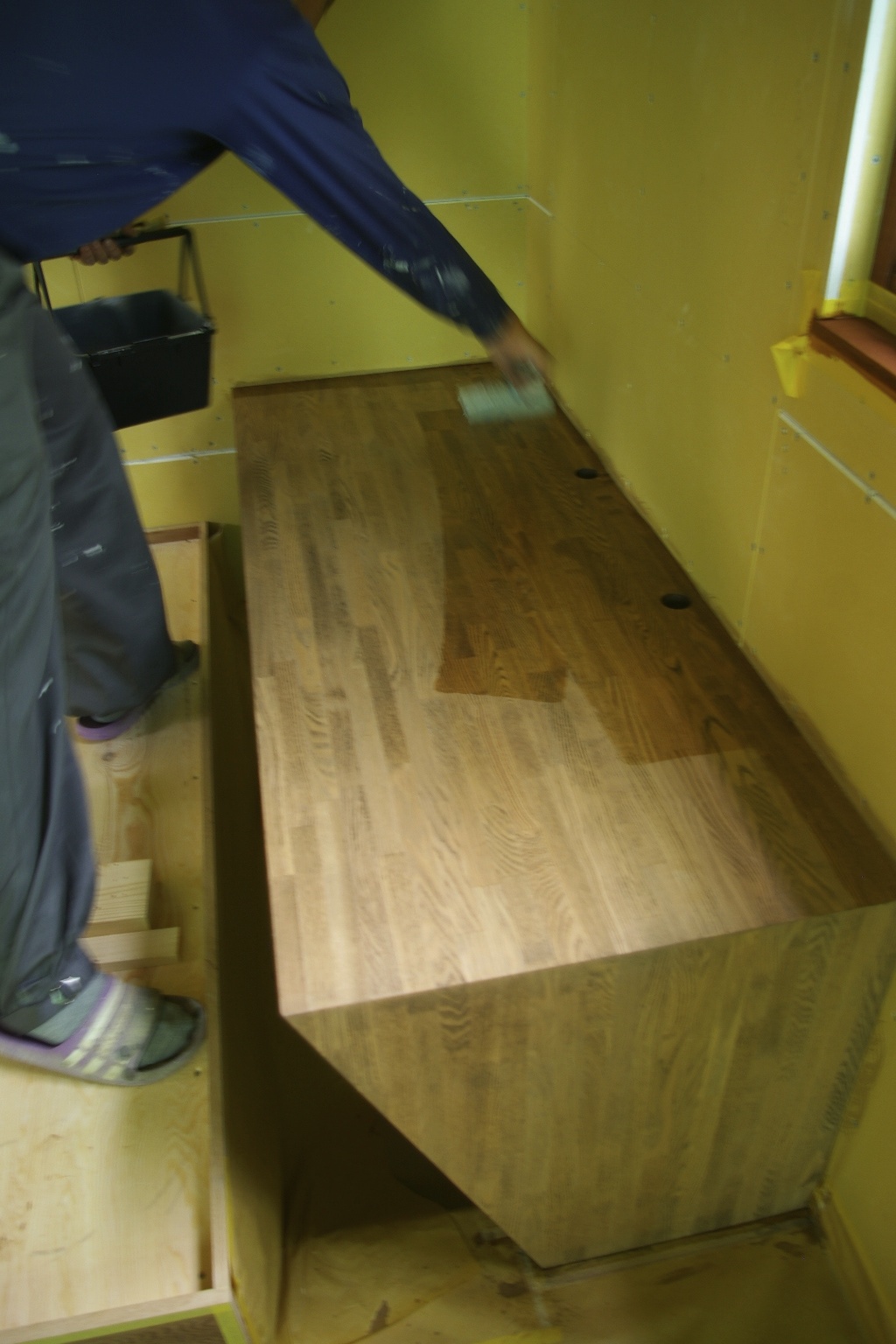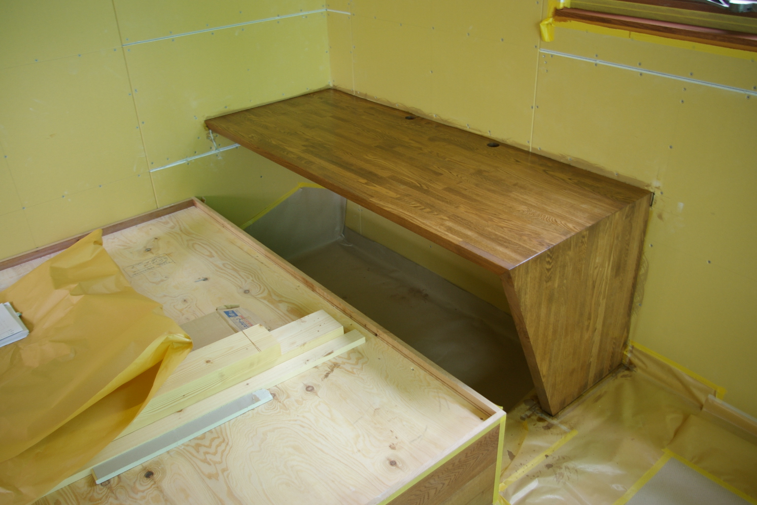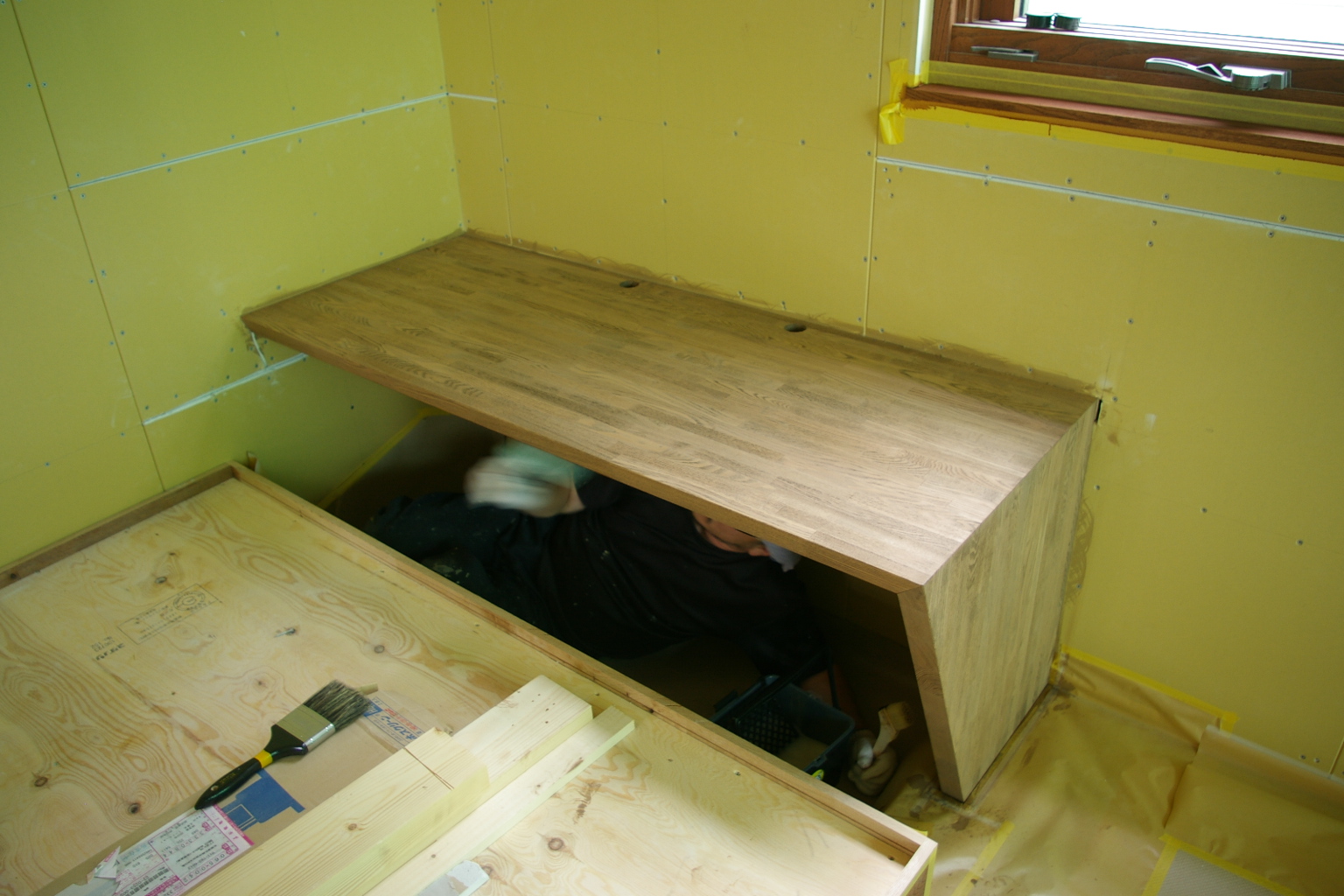 書斎カウンター。表面はわかりにくいですが一度色をつけて塗装済み。