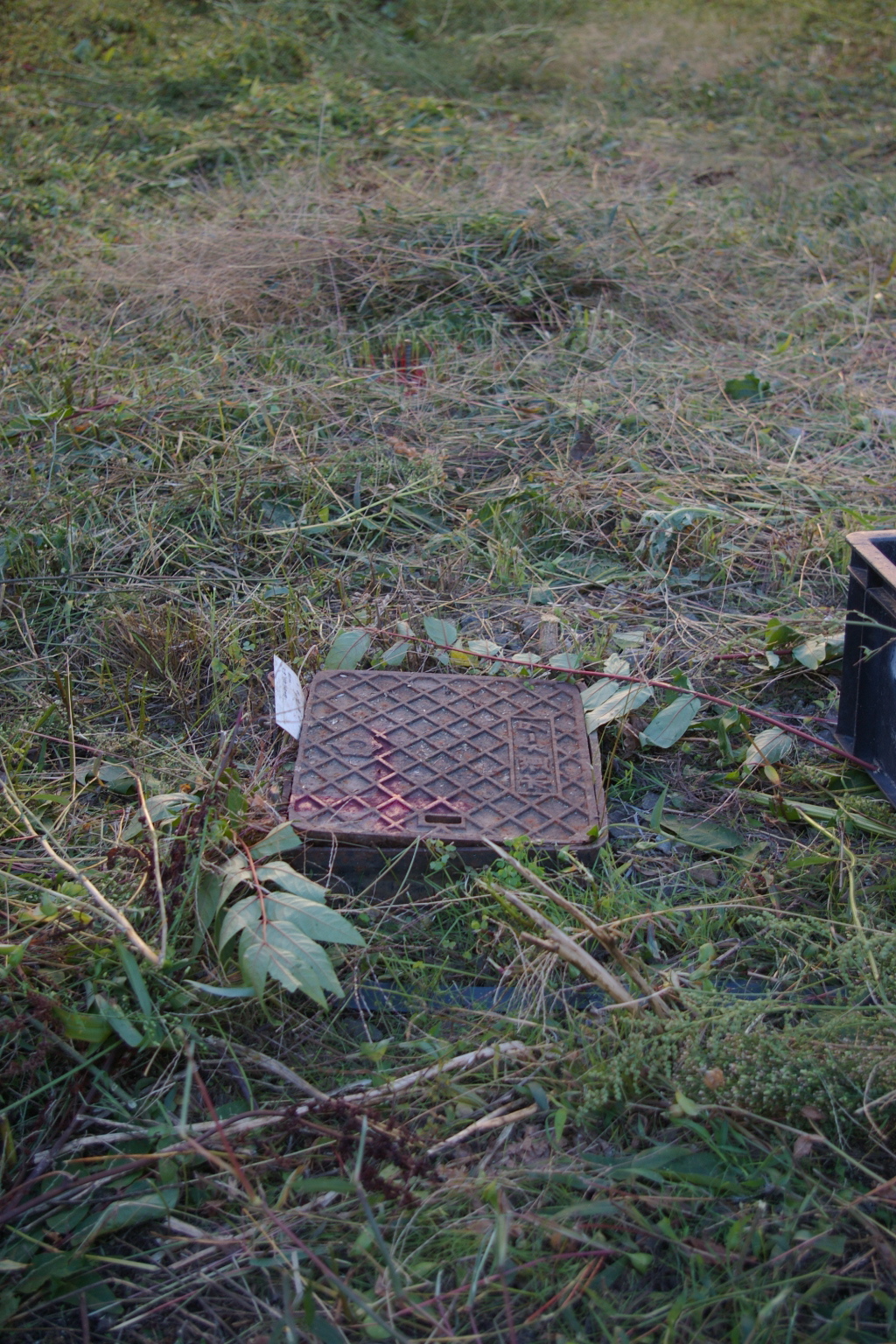 旧水道メーター上にピンポイント、、、、、杭位置が当たります、、、。