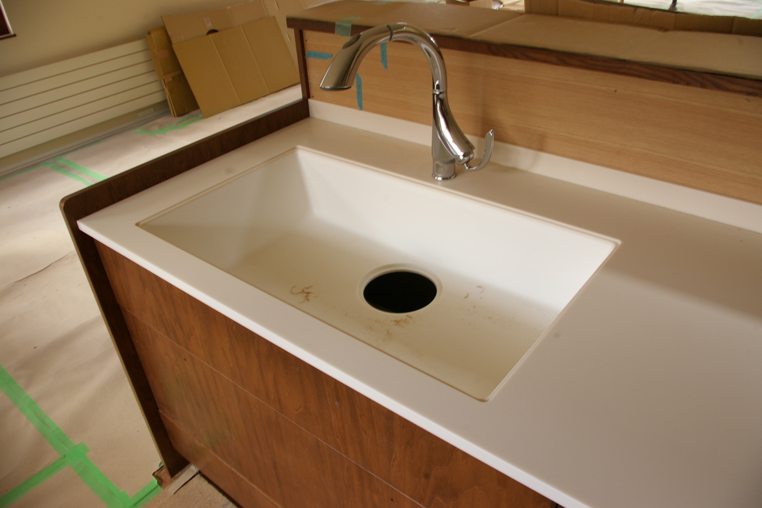 人造大理石天板と一体シンクです。
