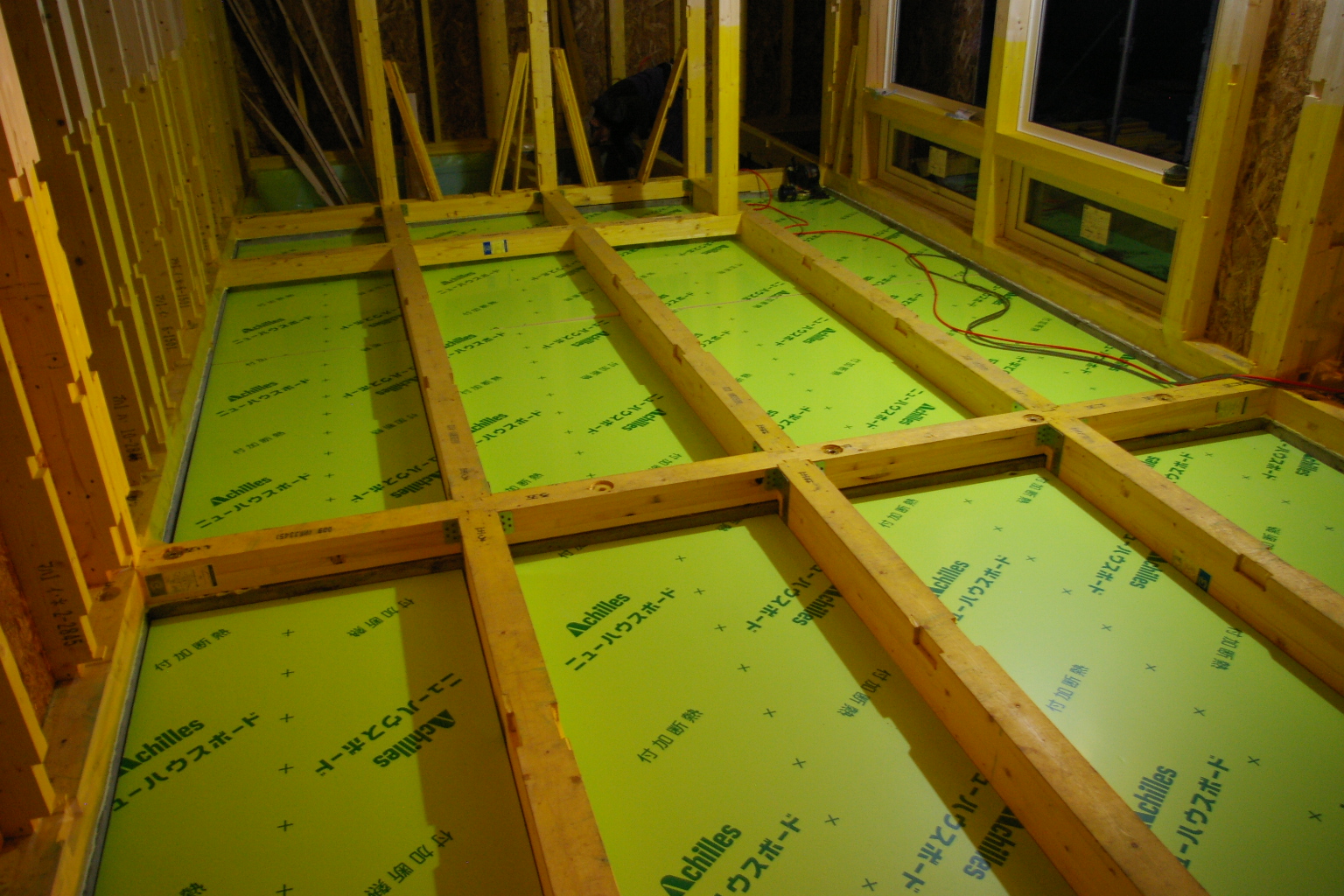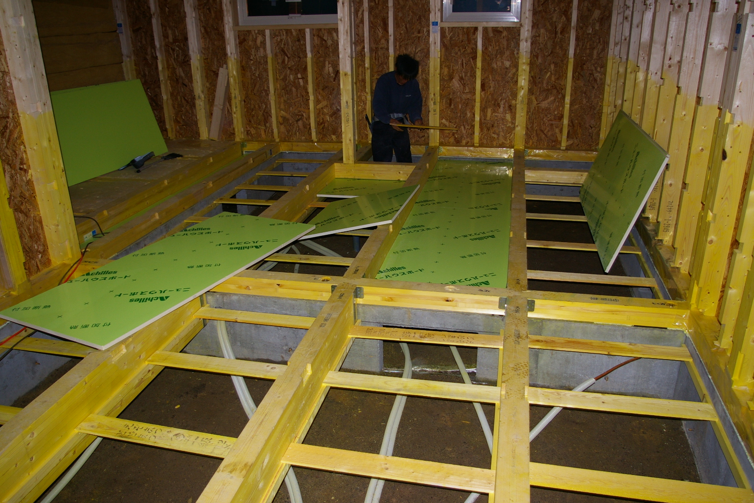 床 ボード断熱が施工されました。