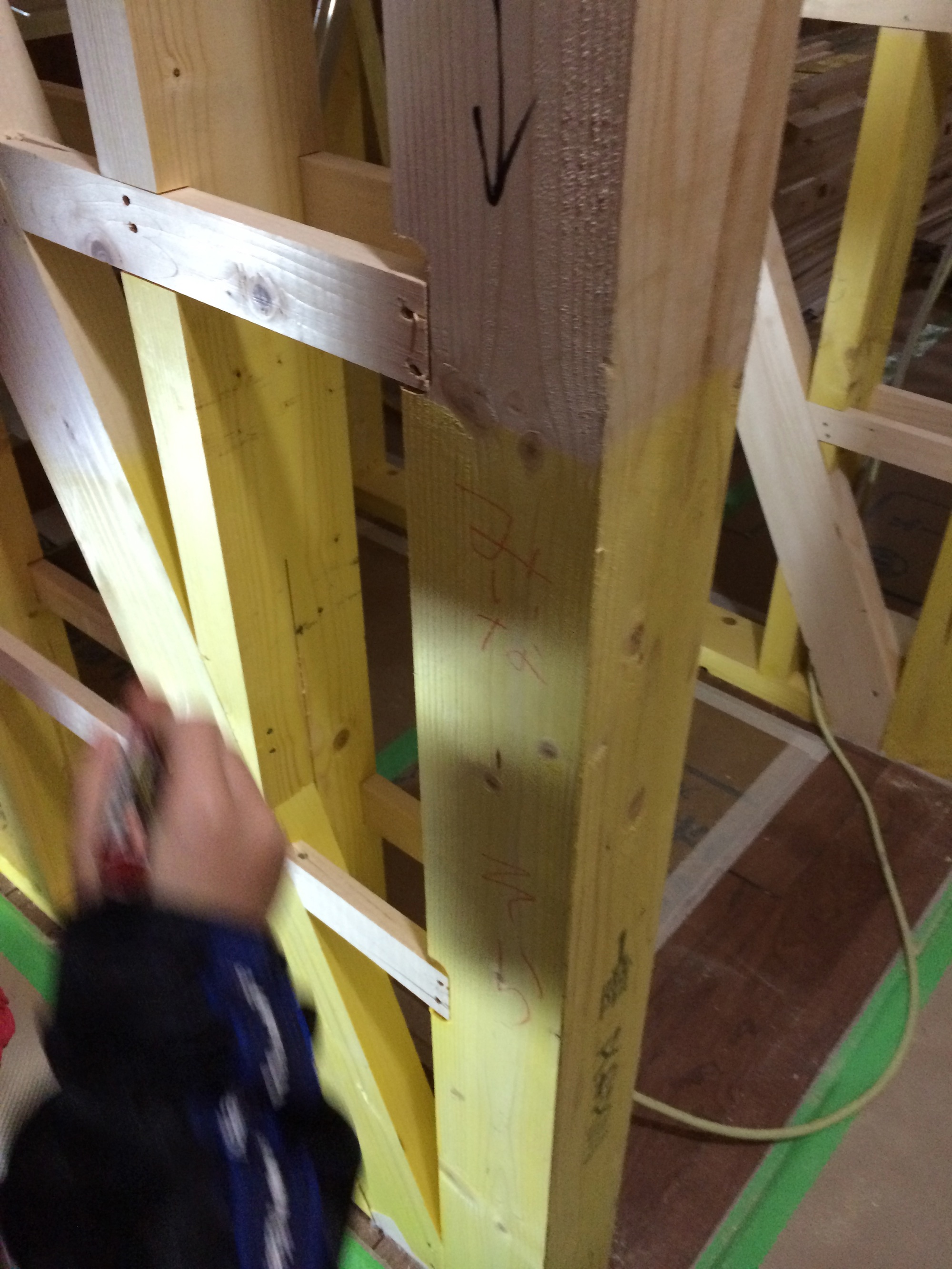マーキングした所が二人にお手伝いしてもらった所。上手に貼れてますね。