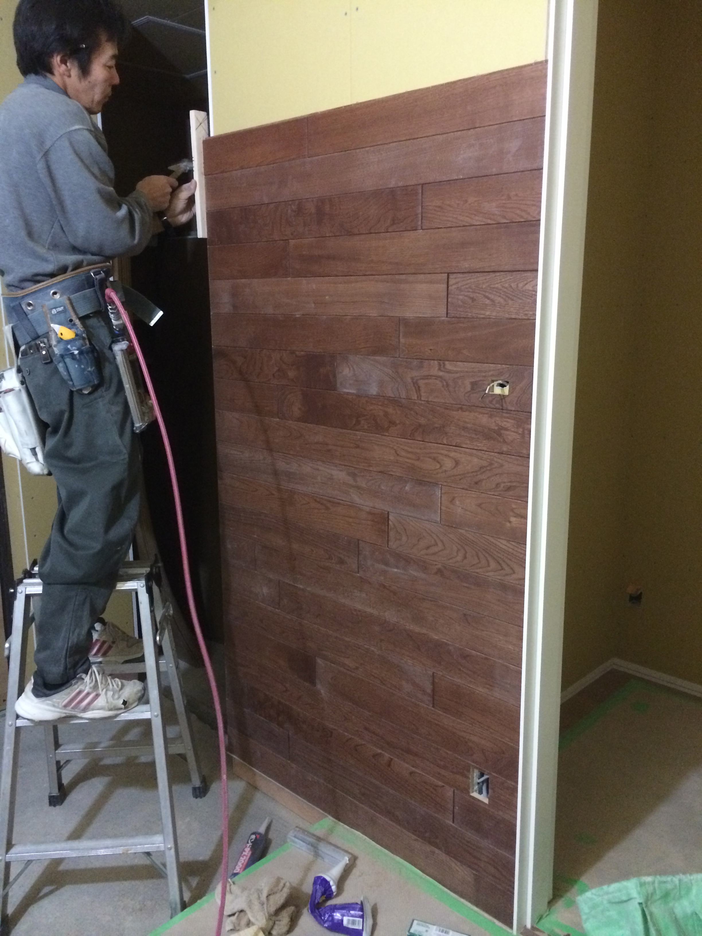 今回も少し玄関の壁に意匠で貼りました。