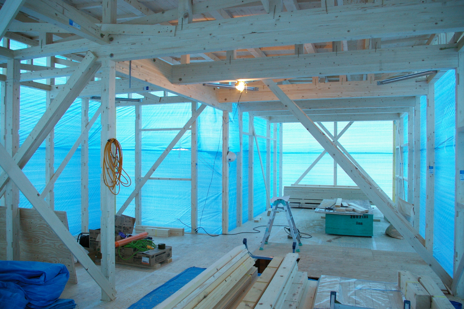 2階は全面養生してもらいましたので雨も入りません。