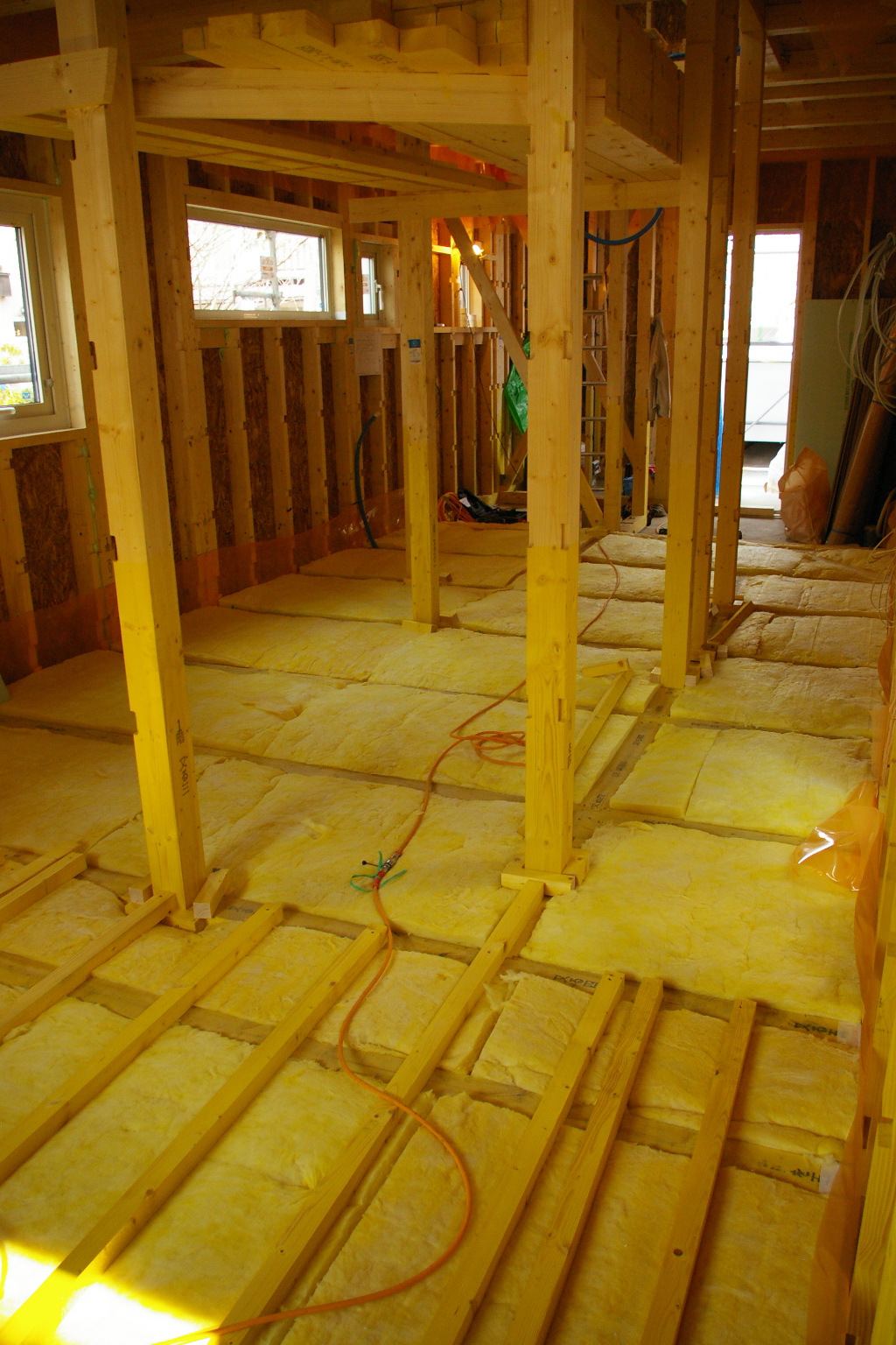 下地を入れて更に断熱を入れて床に気密施工を施し
