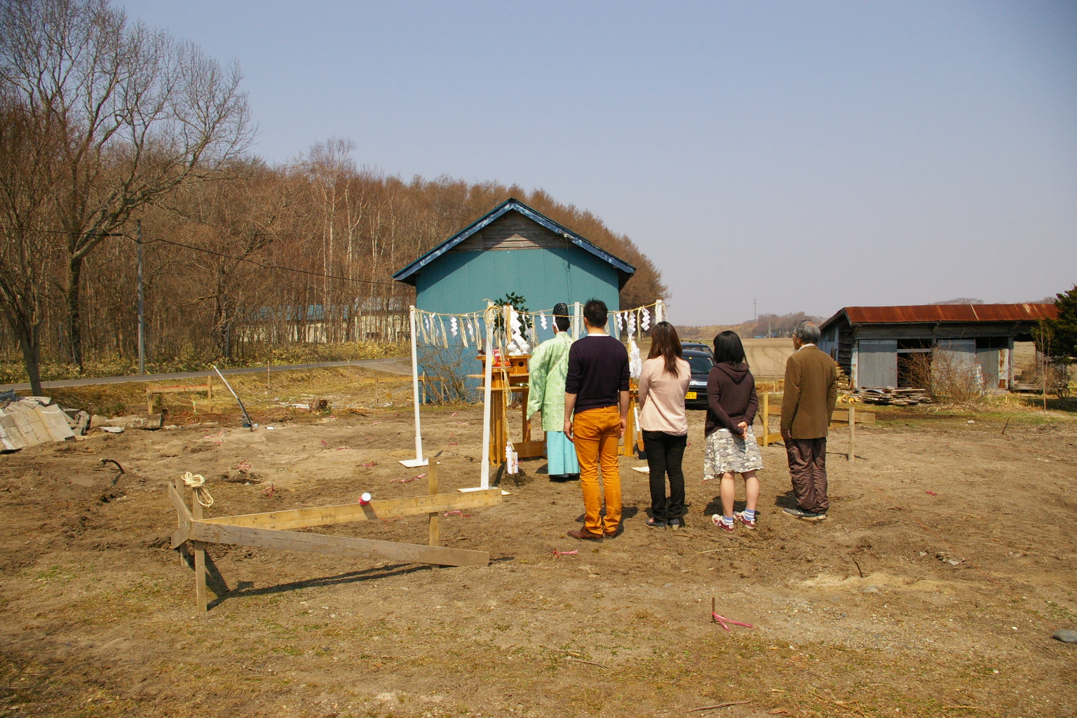 先日、地元の厚真神社から神主さんが来て頂き伴い地鎮祭がおこなわれました。