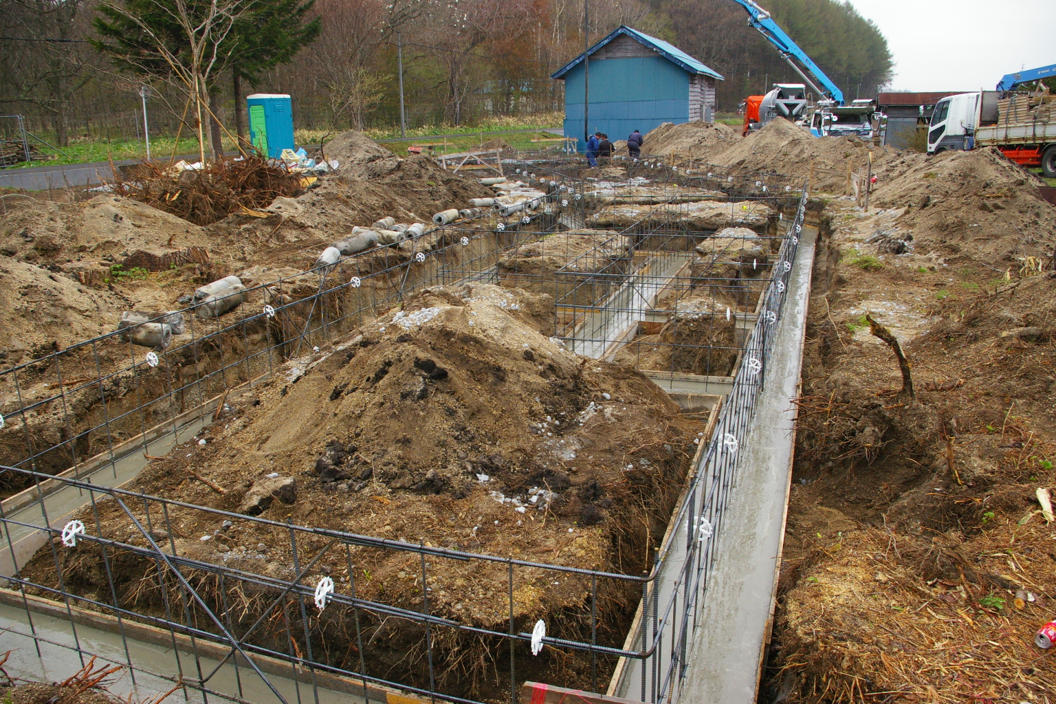 基礎工事が進み鉄筋検査、ベース打設をしています。