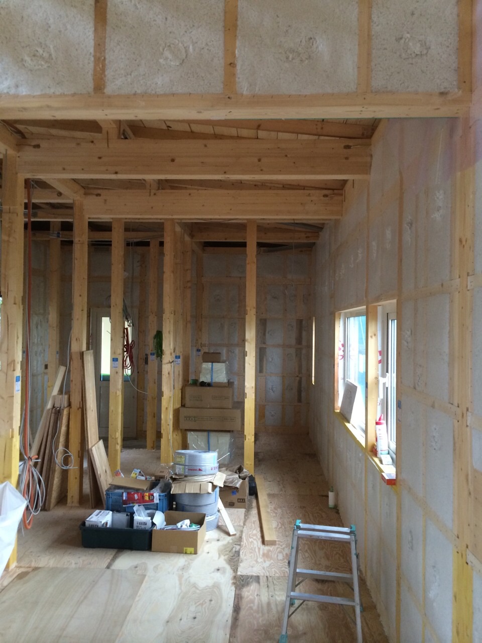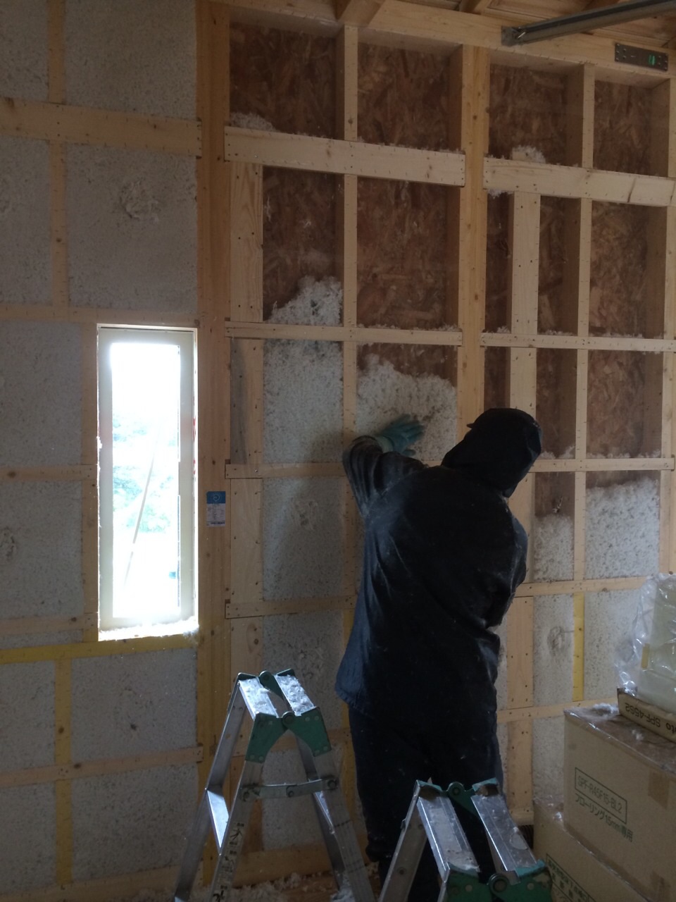 壁全体に断熱材が吹き込まれました。