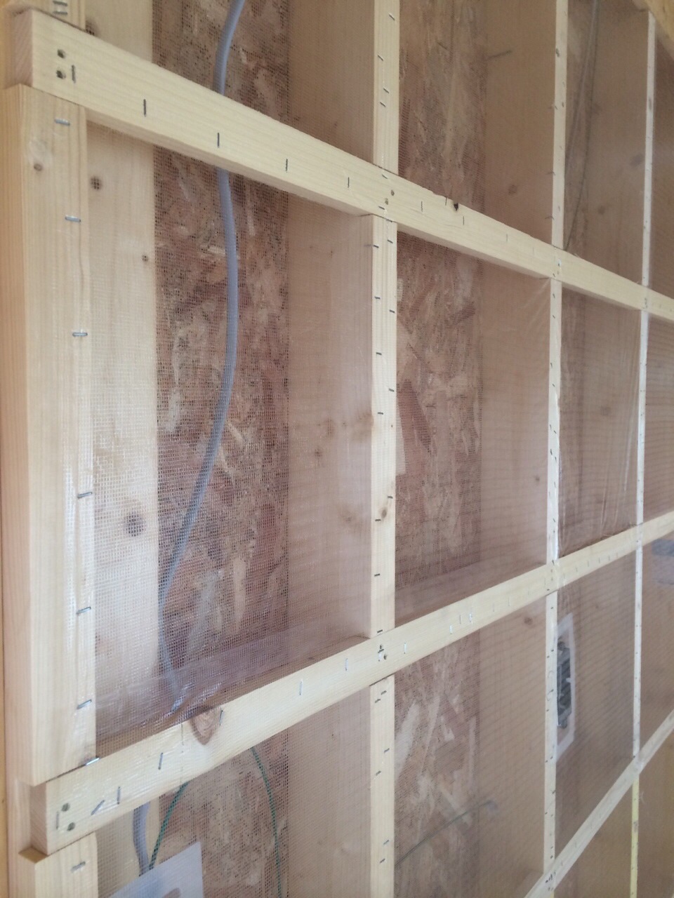 先に内部下地上に断熱材を受けるネットを貼ります。