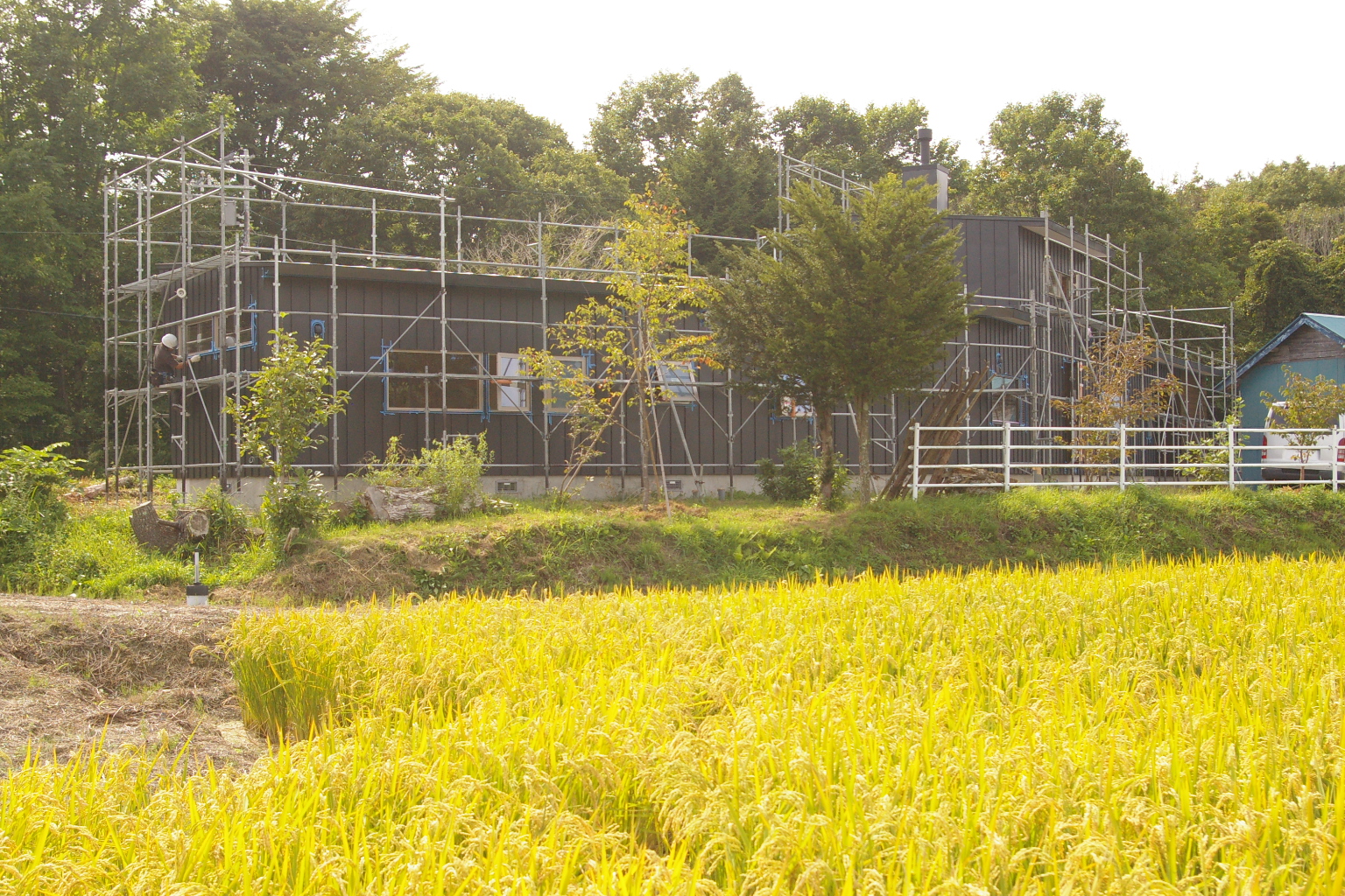 外装の羽目板はお施主様が全て塗装していただきました。