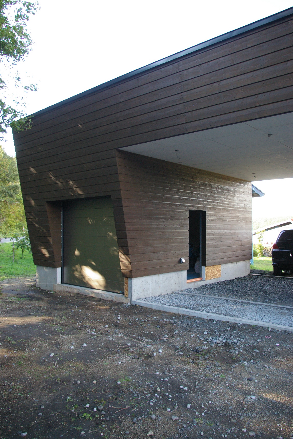 厚真の家 大工工事完成 2014.09.11 07厚真の家 厚真の家 新築工事 ようやく大工工事まで完了です。 足場も外され外観もようやくお目見えです。 車庫、カーポートスペース シャッターも付きました。 いい感じになりました、、、。 来週から二次工事の開始です。 竣工は、、、もうしばらく。 < 前の記事へ次の記事へ > 関連記事 2014.07.2907厚真の家 厚真の家 外部工事 2014.09.0607厚真の家 厚真の家 2020.09.09Detail(細部・納まりなど) 厚真の家 増築工事 2014.07.3107厚真の家 外装 羽目板貼り ブログトップ
