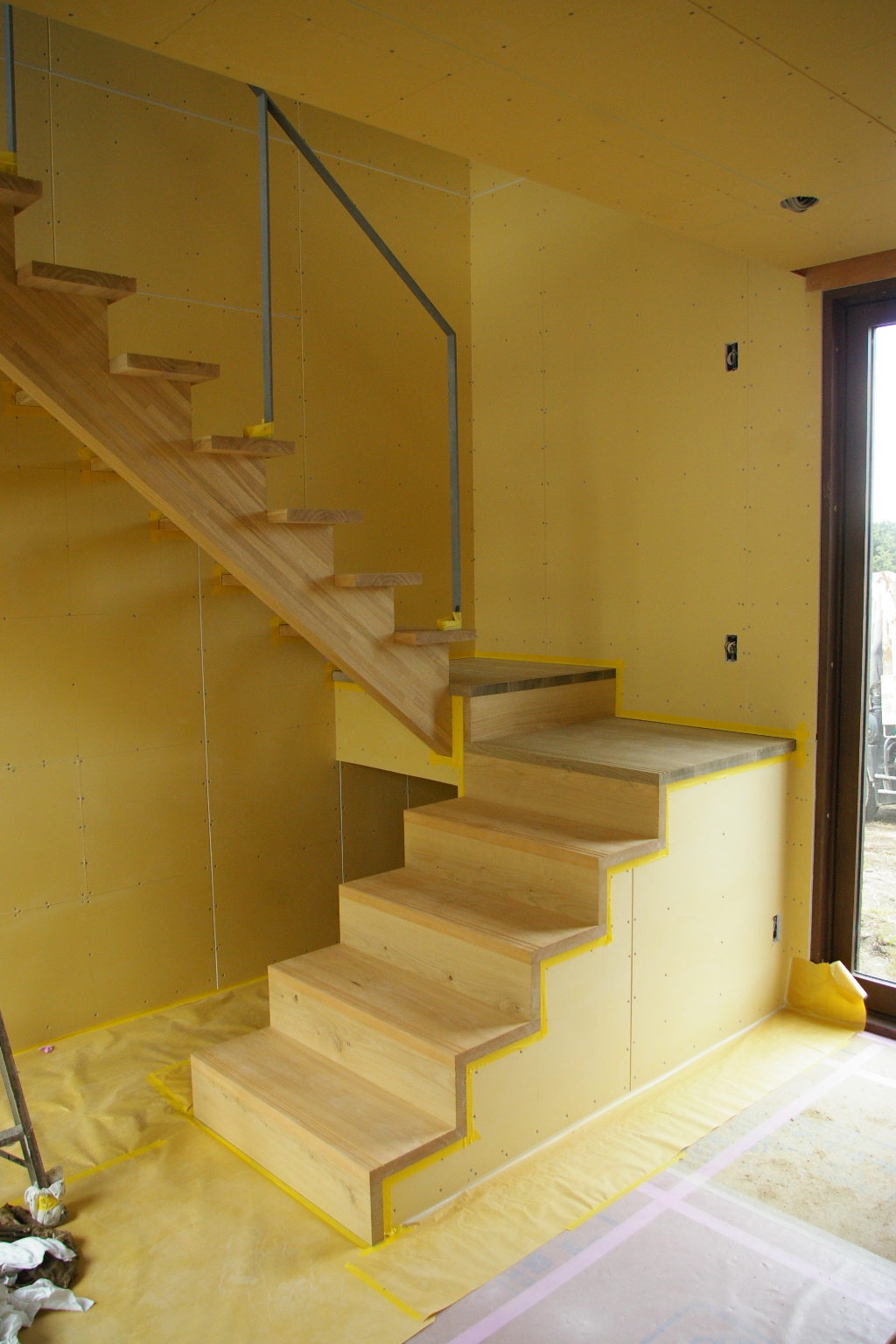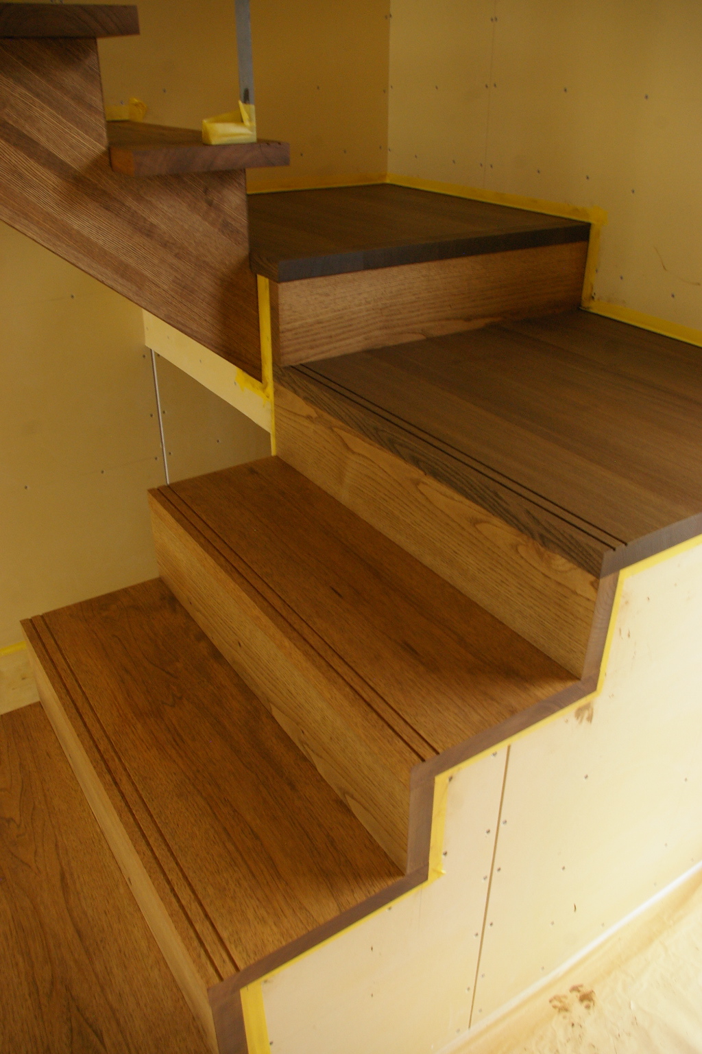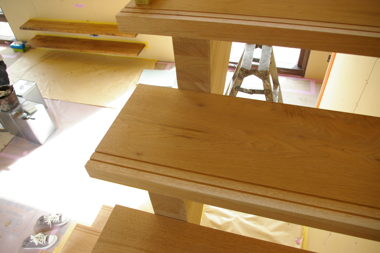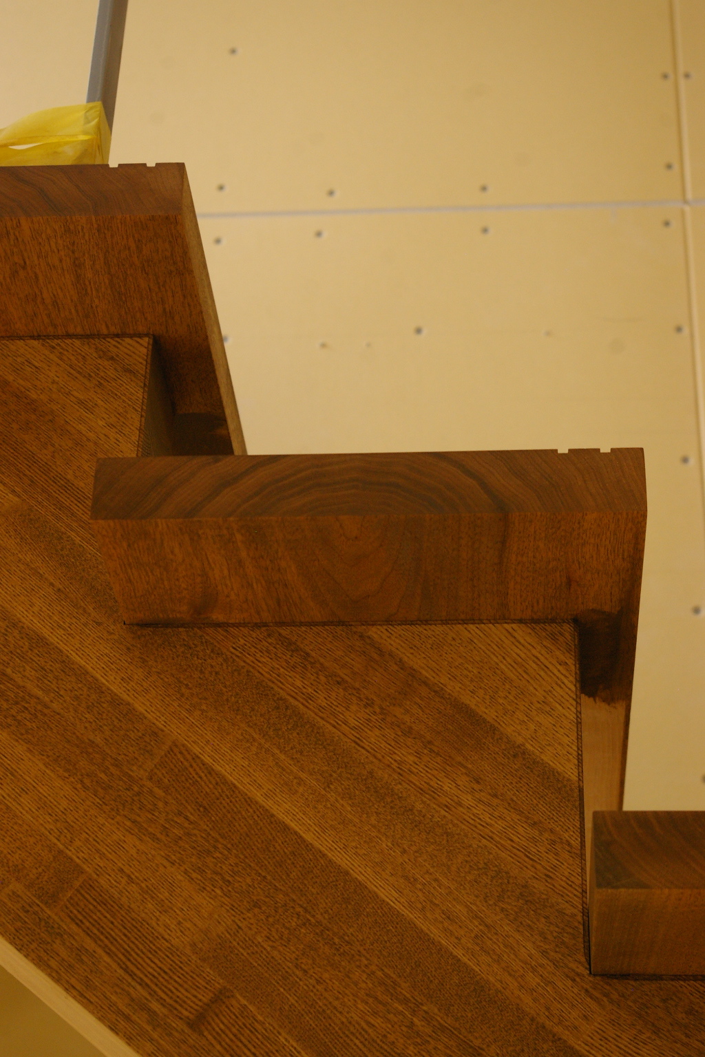 踊り場はニレの埋もれ木 少し原木が青っぽく木目が細かい材料です。