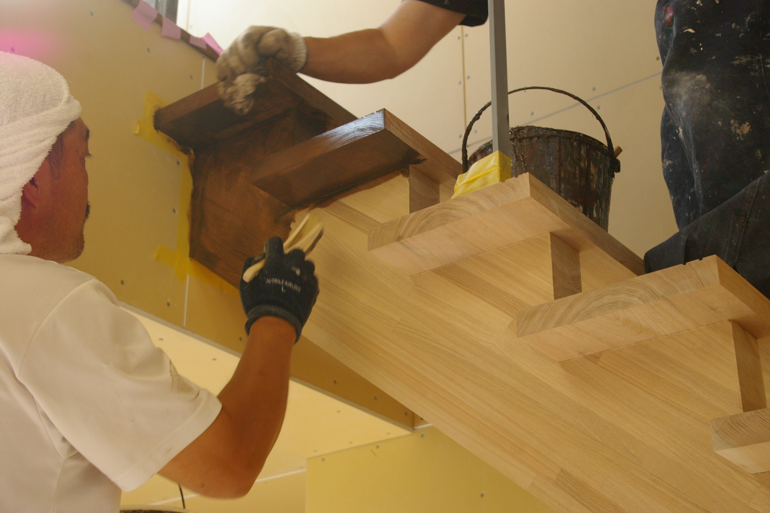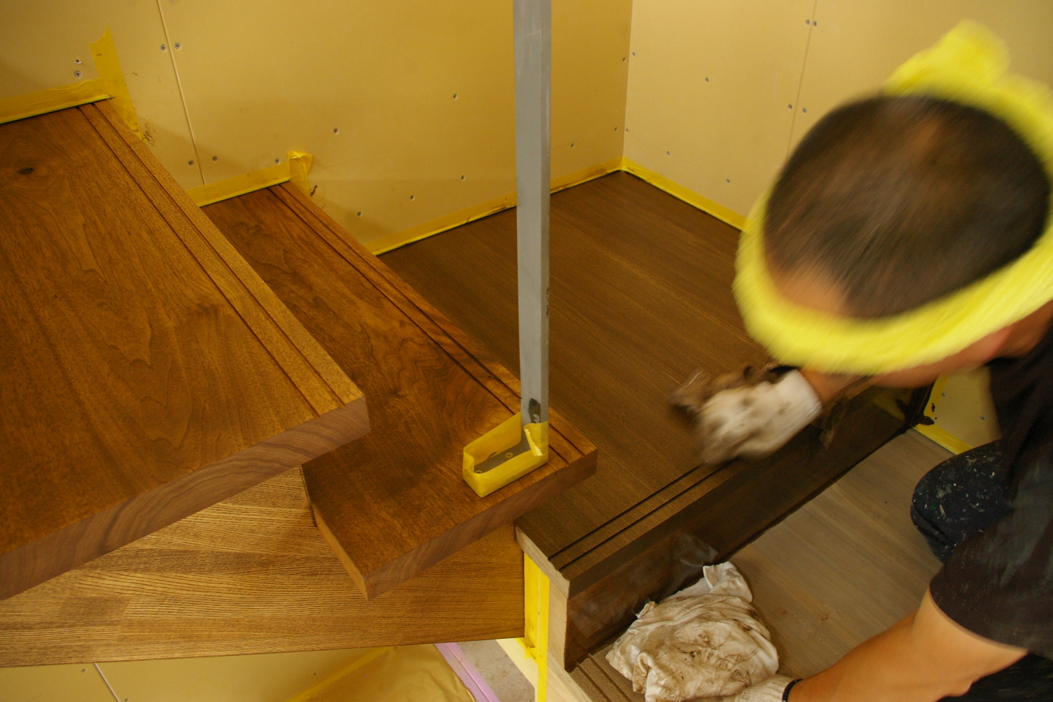 今回はワンコートオンリー ウォールナット色塗布です。さ〜っと塗って