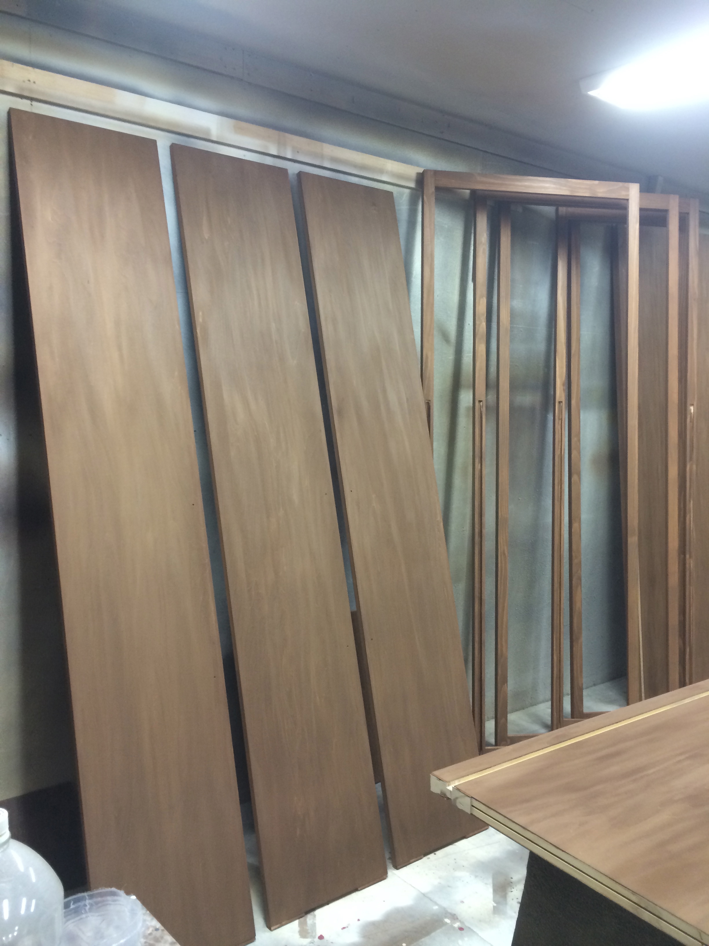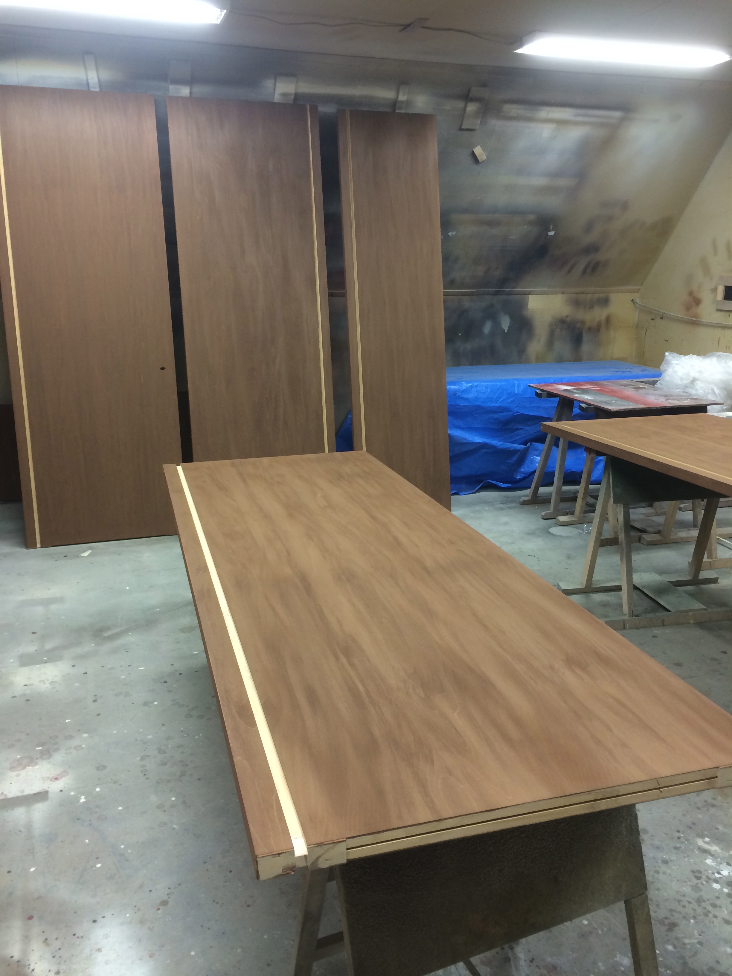造作の建具が出来てきて塗装を開始しています。