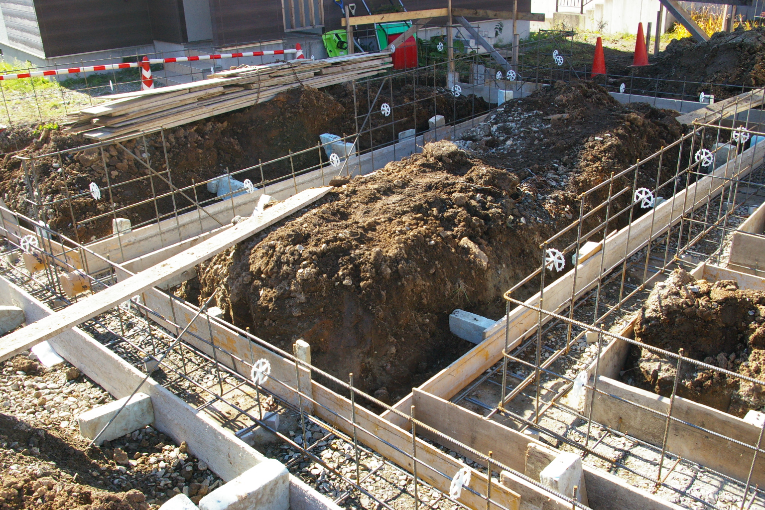 このあと基礎ベースが打設終わり明日から枠取り付けとなります。