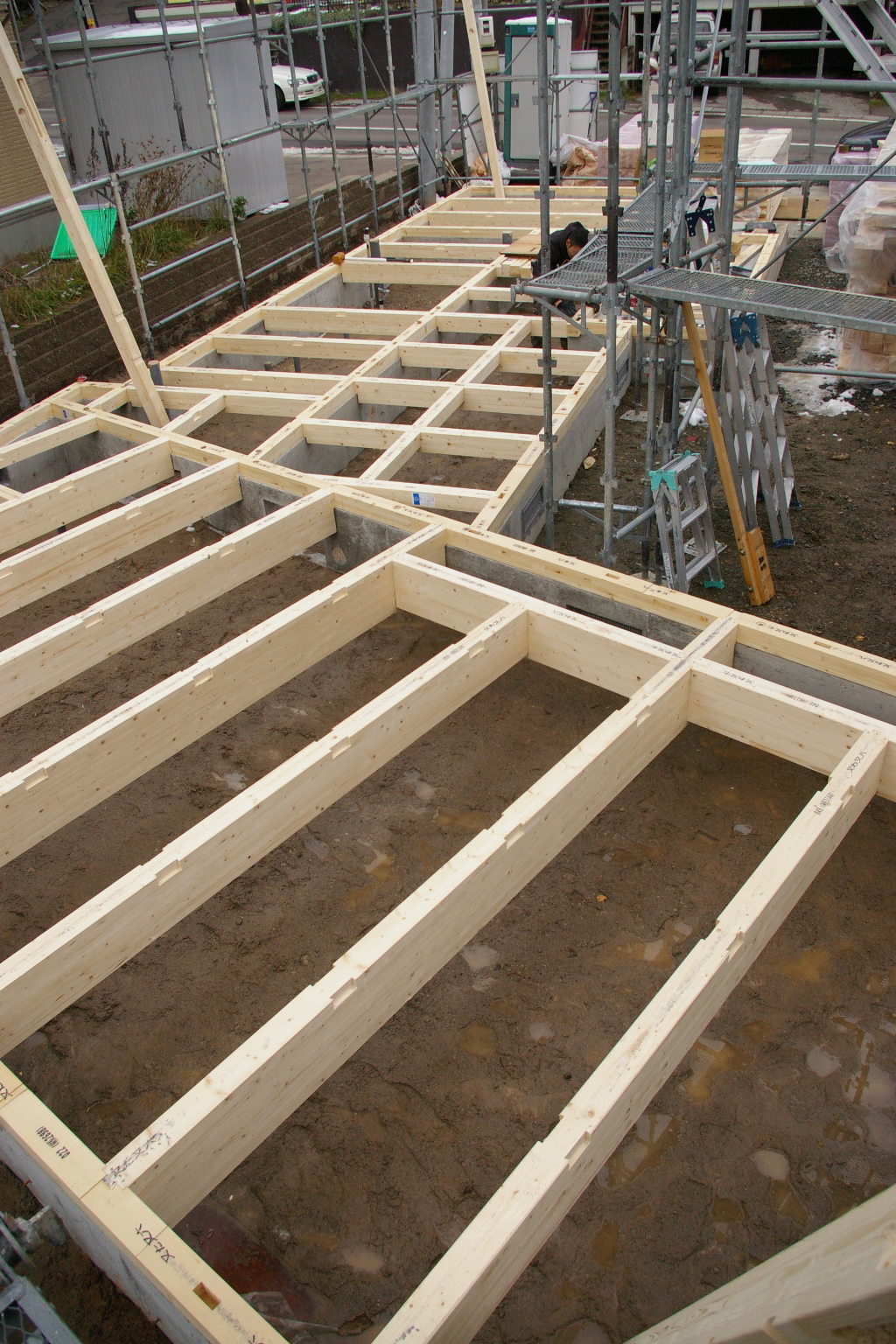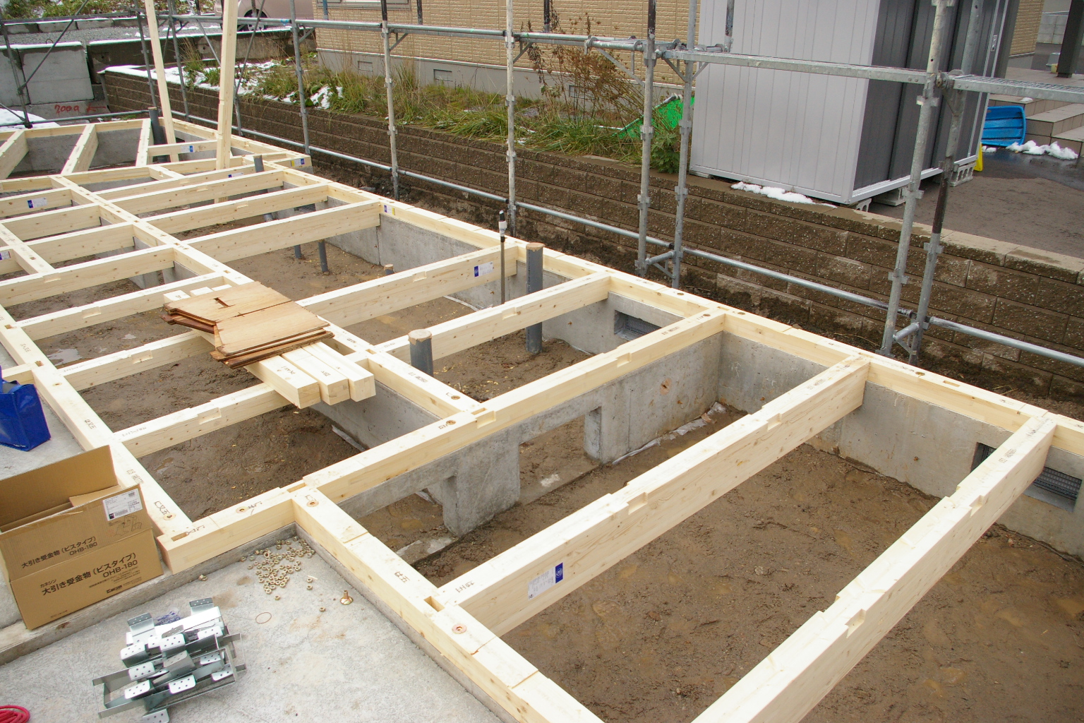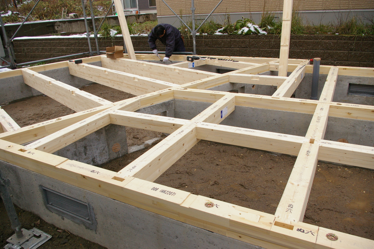 先週は天候不順の為今週から土台敷設開始しました。