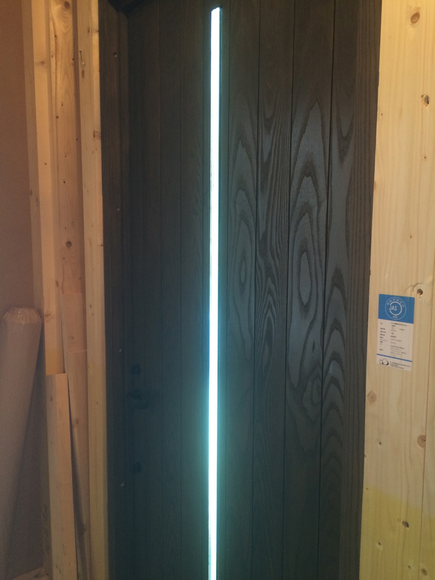 以前も採用したドアで真ん中に積層硝子が埋め込んでありますので。