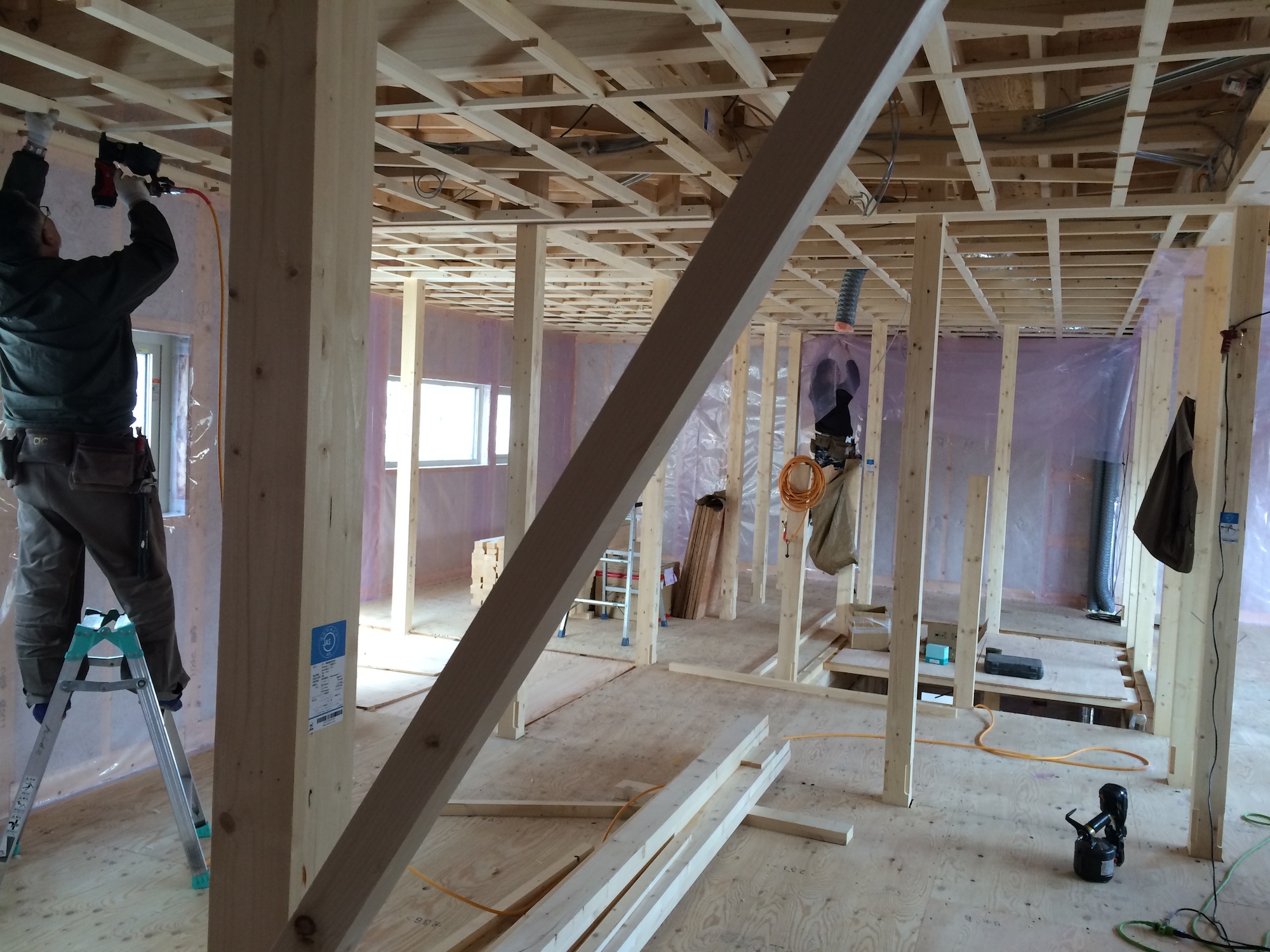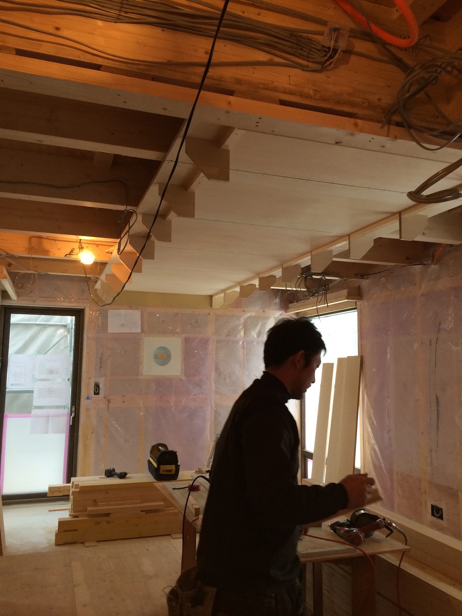 里塚の家は内部壁のコンセント工事、断熱材吹き込みが終わり