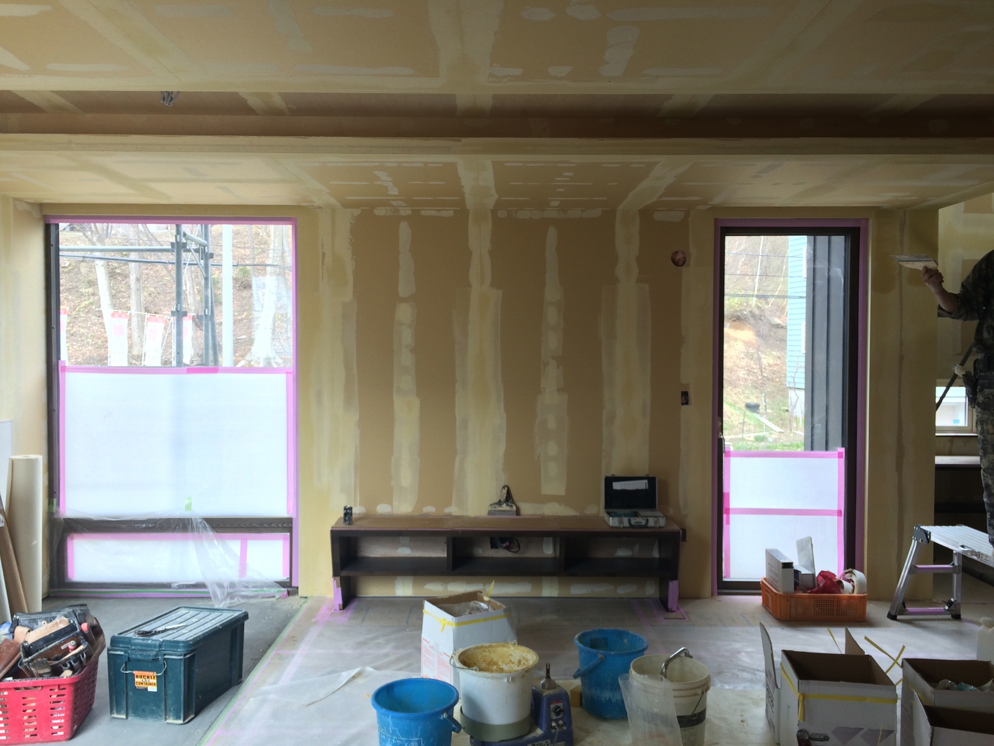 里塚の家 2015.04.24 10里塚の家 里塚の家 新築工事 こちらは内装工事施工中です。 コーナーテープを施工したりパテ下地の施工中です。 一面貼り分けるクロスです。 全体的に色のトーンは黒ベースです。 < 前の記事へ次の記事へ > 関連記事 2014.12.0510里塚の家 里塚の家 新築住宅工事着工です。 2015.04.0310里塚の家 里塚の家 2015.02.2110里塚の家 里塚の家 2015.04.1510里塚の家 里塚の家 ブログトップ