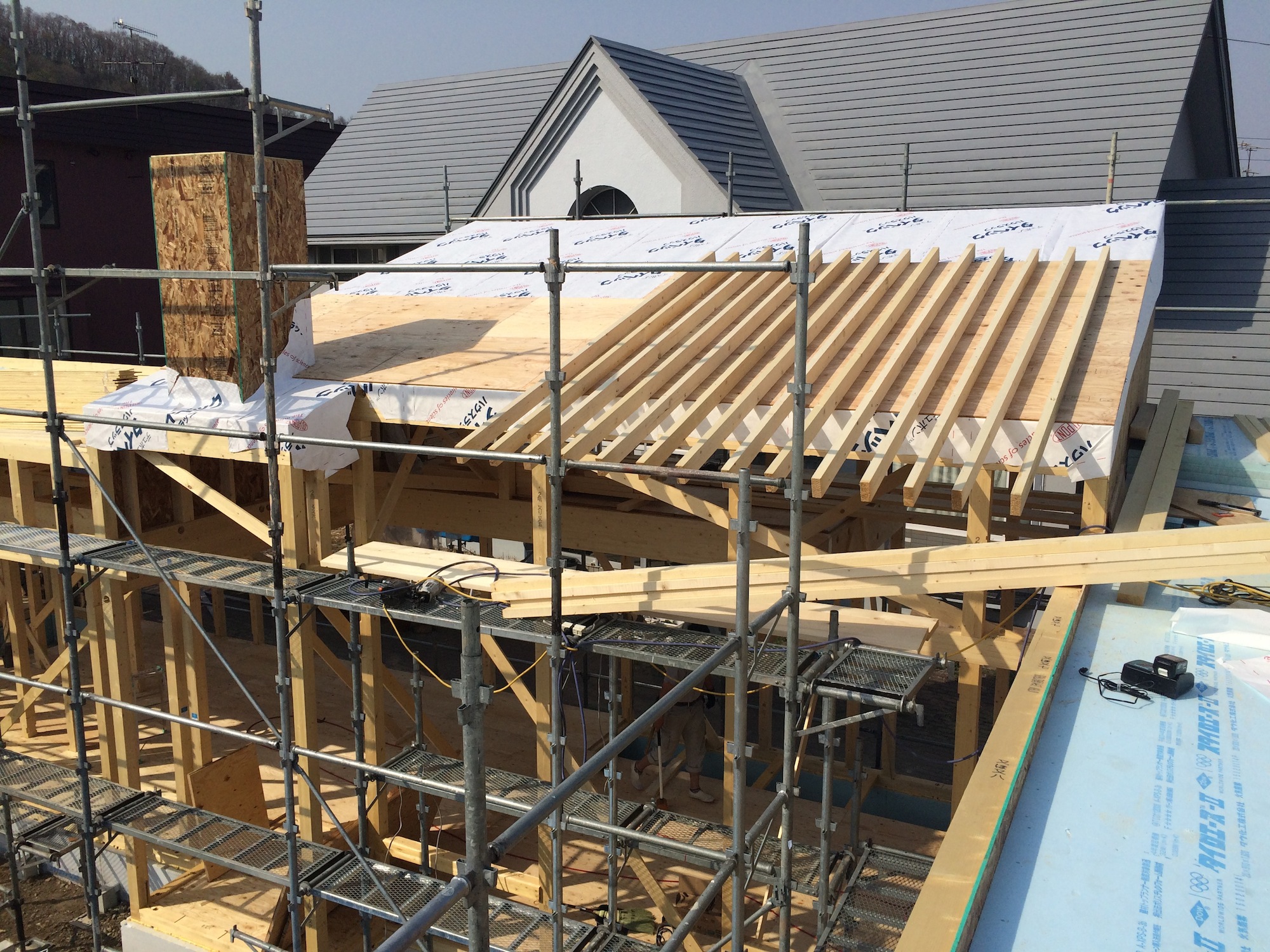 福井の家 2015.04.27 11福井の家 福井の家 新築工事 福井の家現場は構造体の棟上げ中です。 こちらは1階 リビング廻り L型の建物外観が出来てきました。 一部吹き抜けとロフトの勾配屋根部分です。 撒きストーブの煙突も下地まで出来ています。 < 前の記事へ次の記事へ > 関連記事 2017.03.1311福井の家 雑誌撮影 2015.05.2511福井の家 福井の家 新築工事 2015.06.0211福井の家 福井の家 2015.04.10家づくりの考え 福井の家 ブログトップ