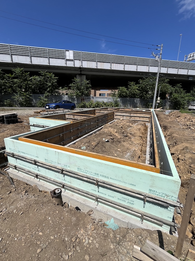 基礎断熱仕様で枠を作り近日布基礎打設予定です。