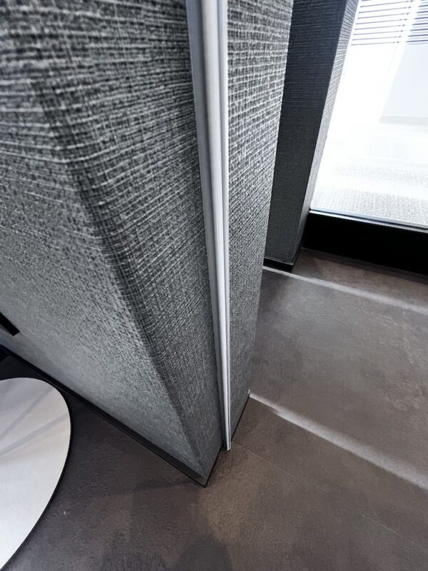 開き戸も枠無しで収まります。下の部分は幅木有での収まりですが